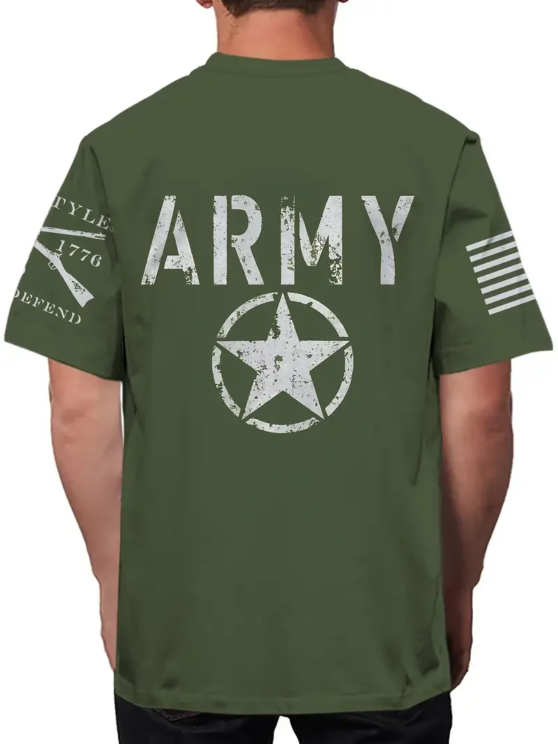 Summer Men’s T-Shirt Casual Short Sleeve Tee Army Pattern Print Oversized Clothing Fashion Streetwear Outdoor Crew Neck Tops