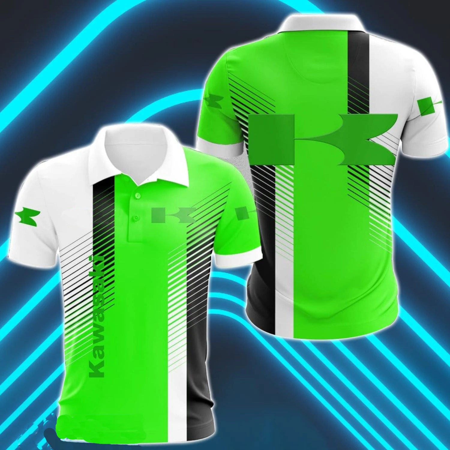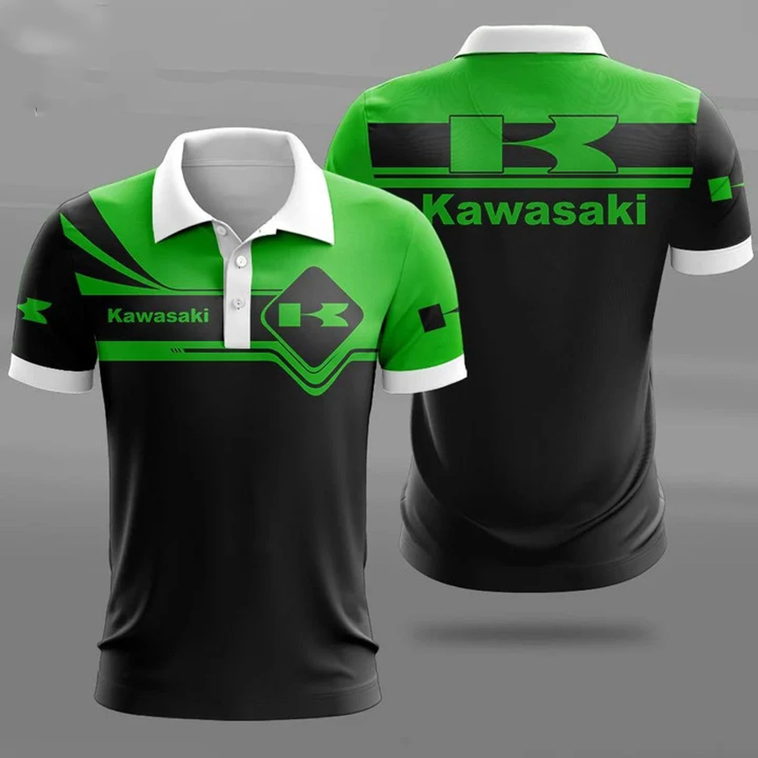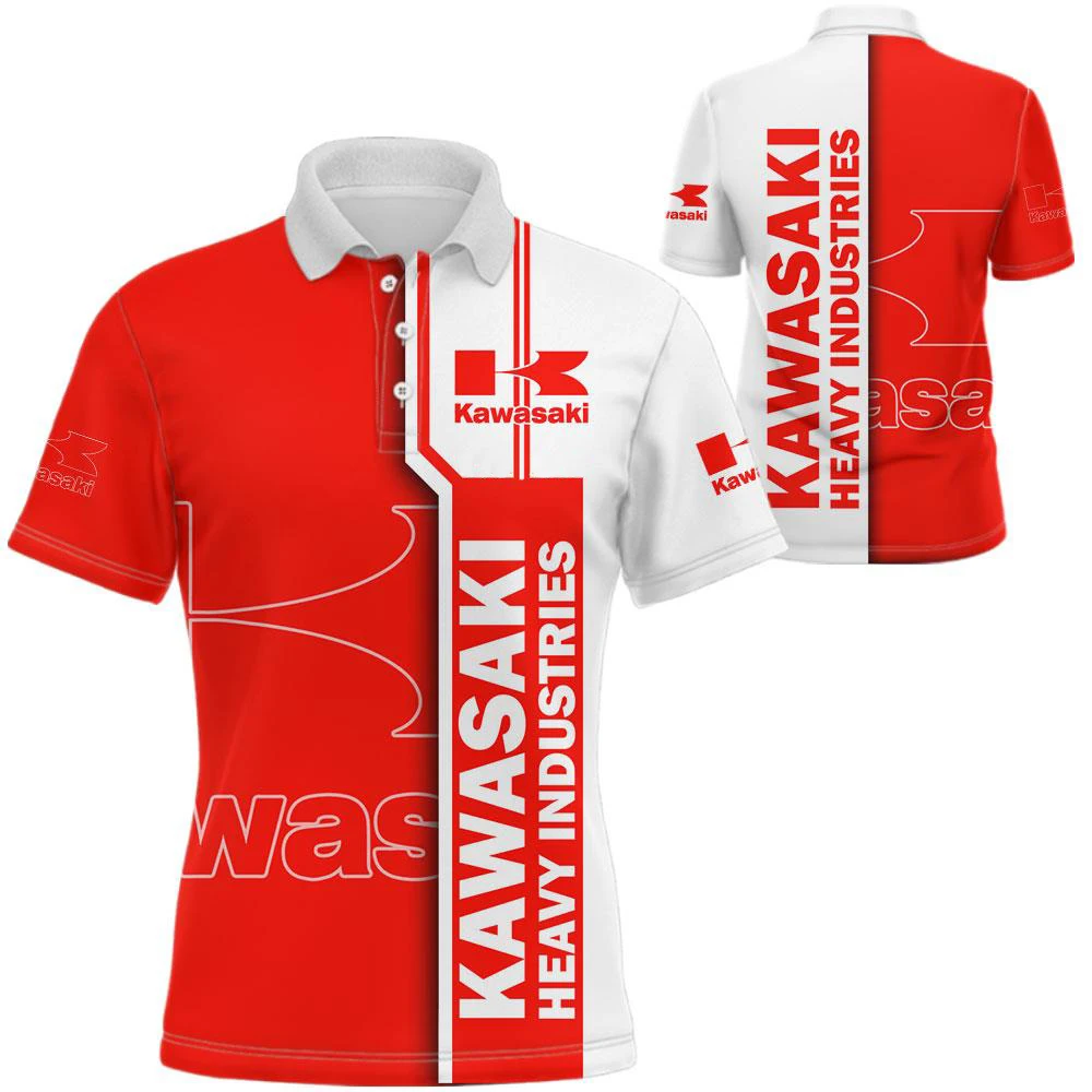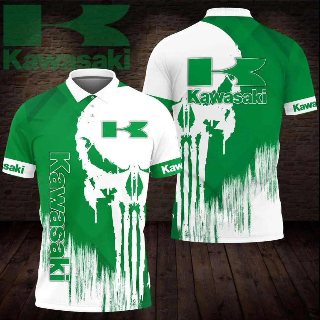 Summer New Men’s 3D Printed Kawasaki Motorcycle Polo Shirt Men Street Casual Sports Fashion Button Polo Top