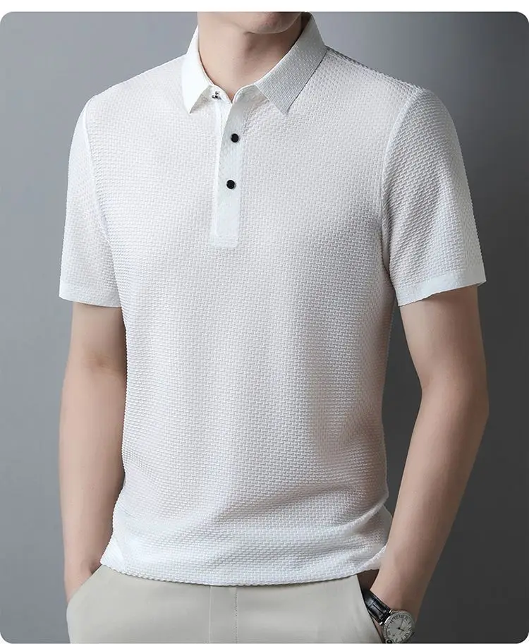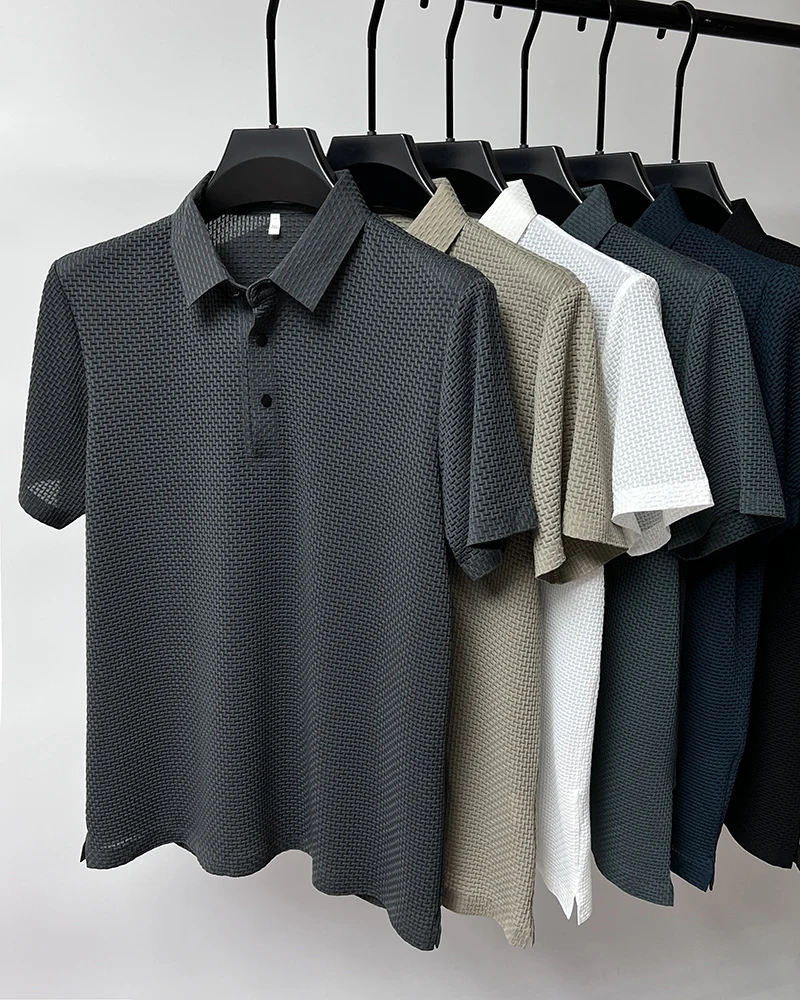 Summer New Men’s Halter Hollow Short Sleeve Polo Shirt Ice Silk Breathable Business Fashion T-shirt Men’s Brand Clothing