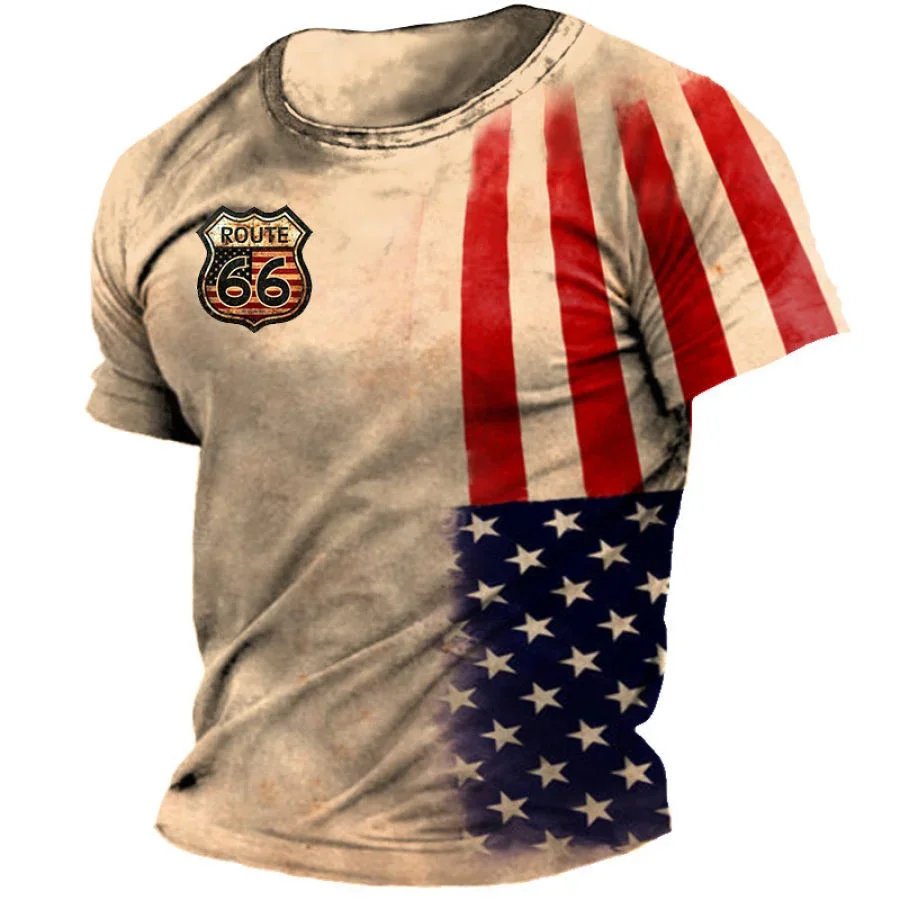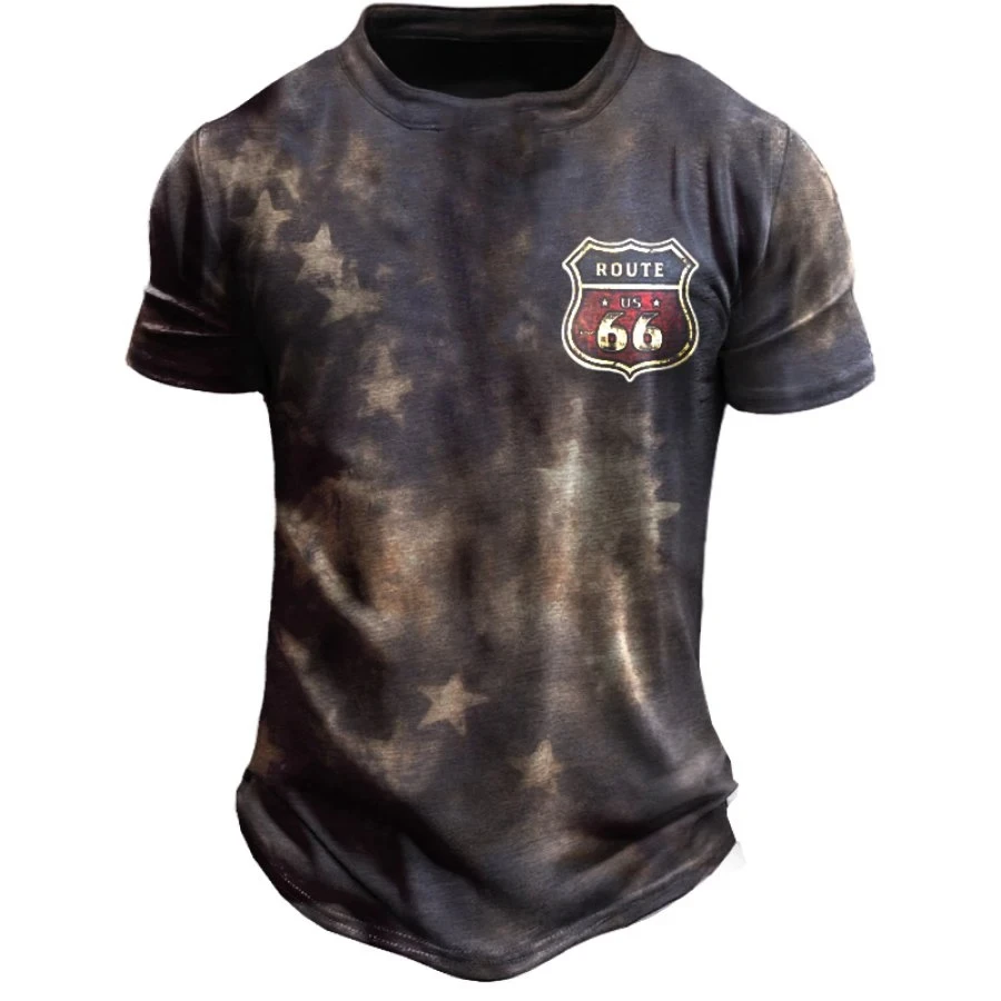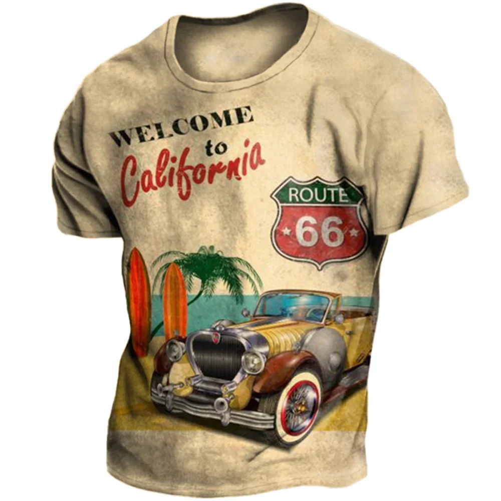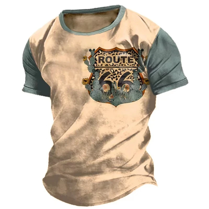 Summer Retro Men’s T Shirt Route 66 Print Casual Short Sleeve T-Shirt Fashion Streetwear Male Oversized Clothing O-Neck Pullover