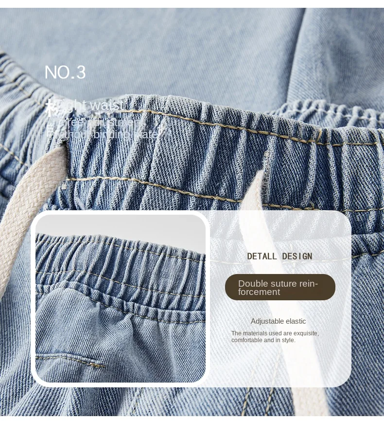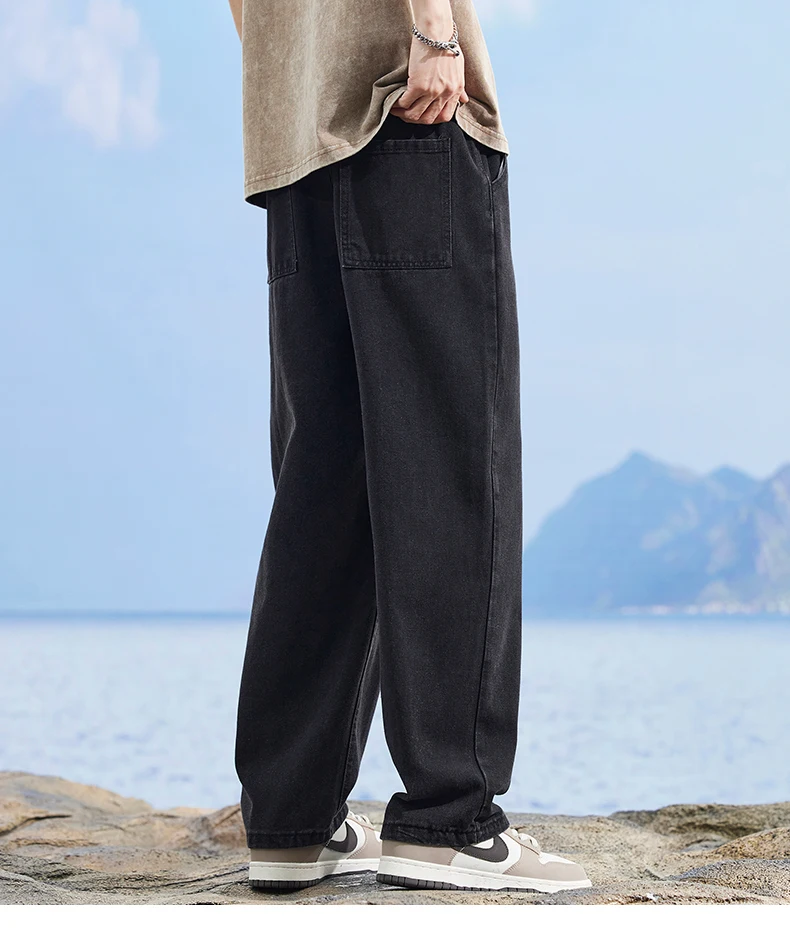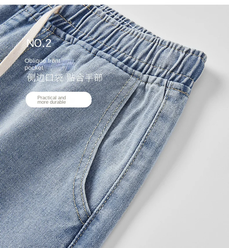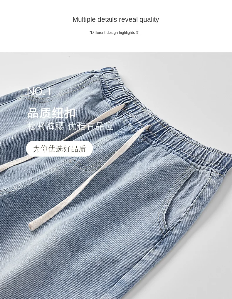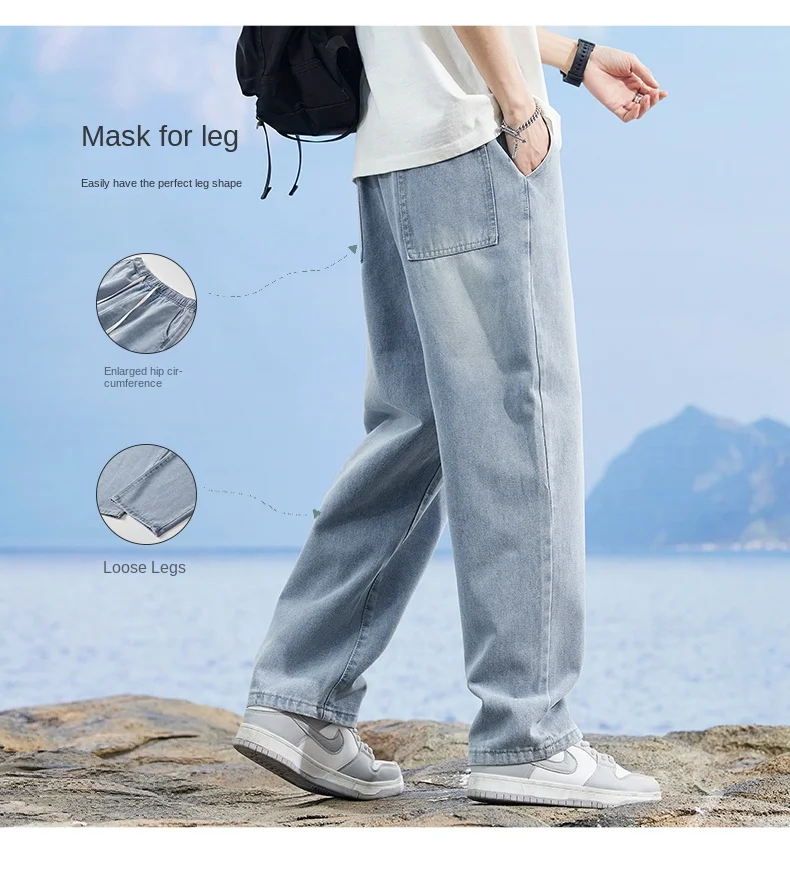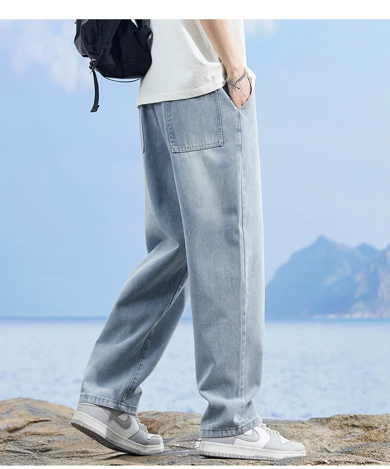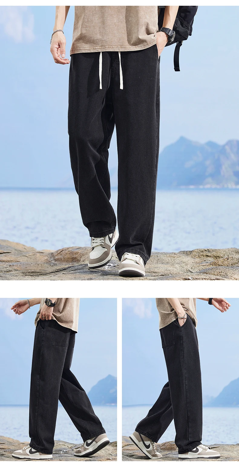 Summer Thin Jeans Men’s Elastic Waist Brand Loose Wide Legs Retro Washed Old Straight Student Trousers