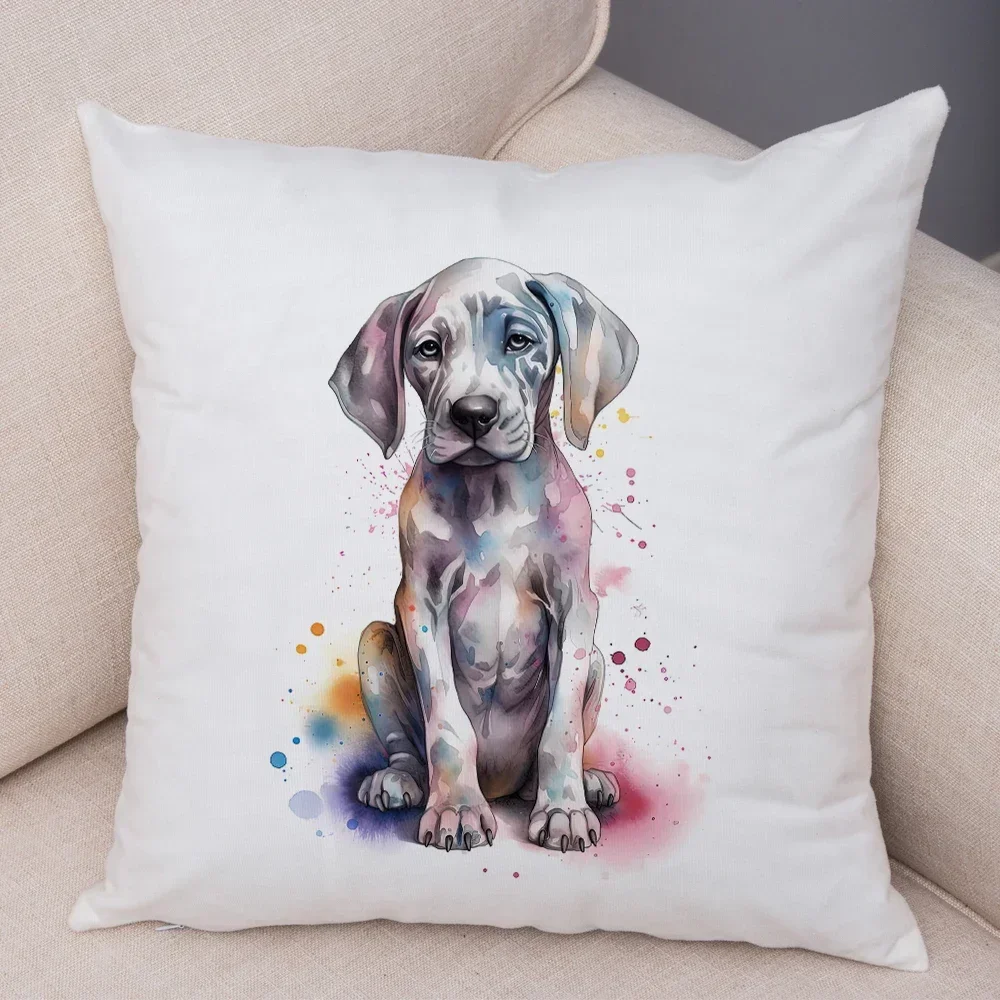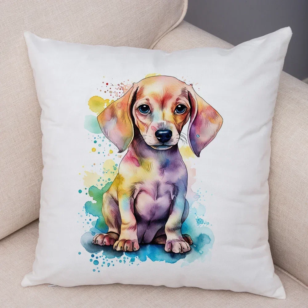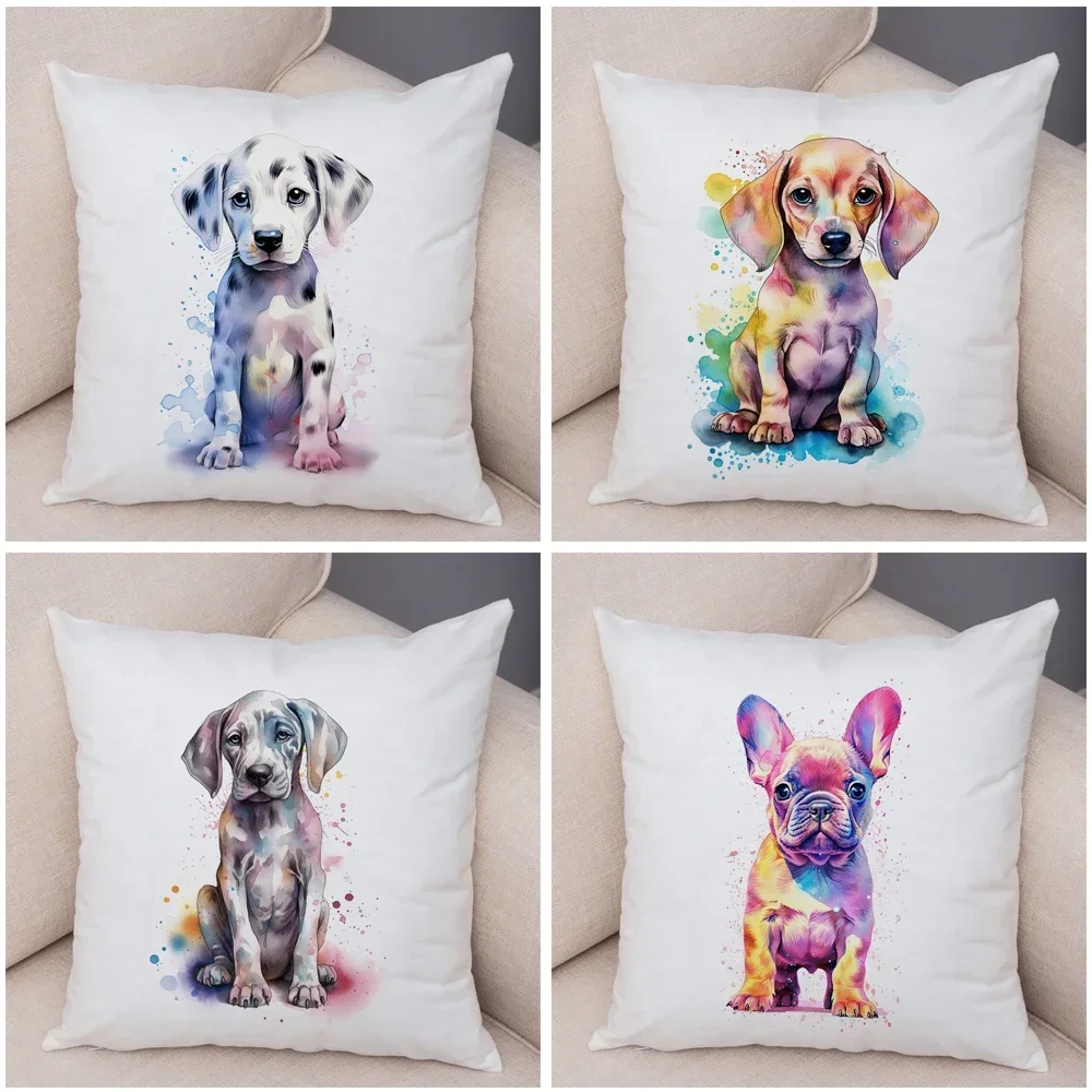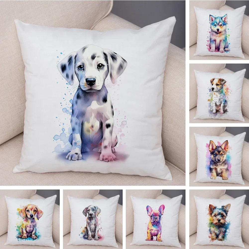 Super Cute Watercolor Dog Cushion Cover Double Print Decor Pet Animal Pillowcase Soft Plush Pillow Case for Car Sofa Home