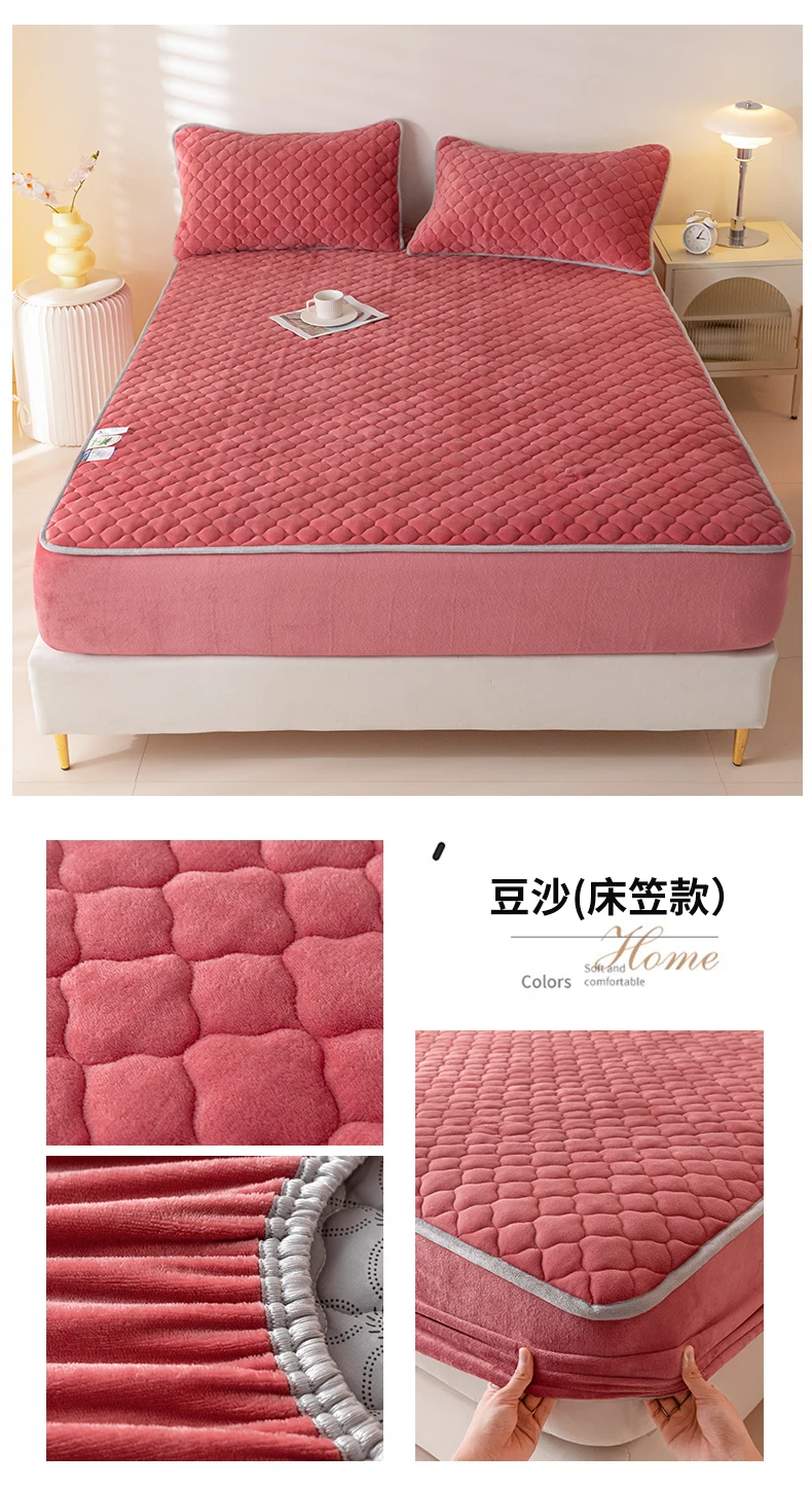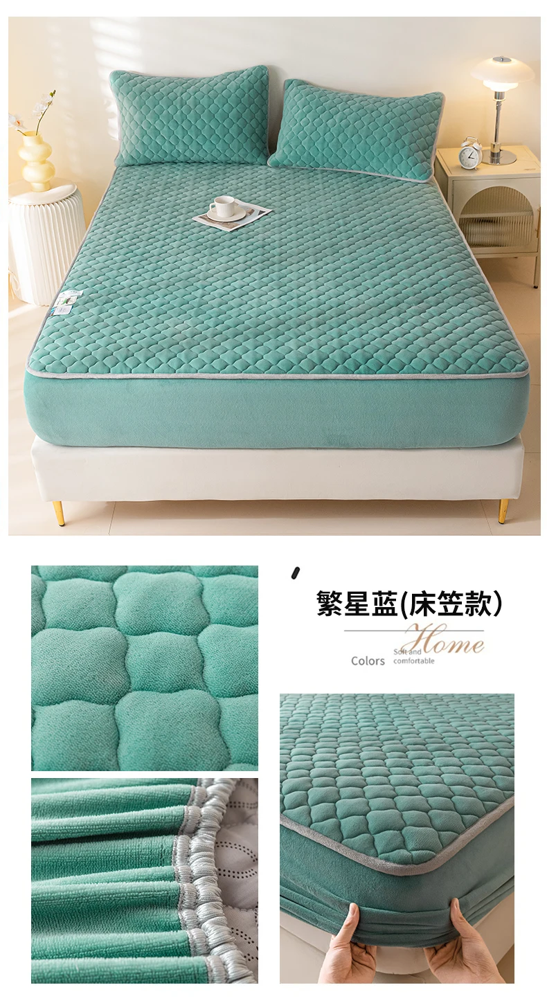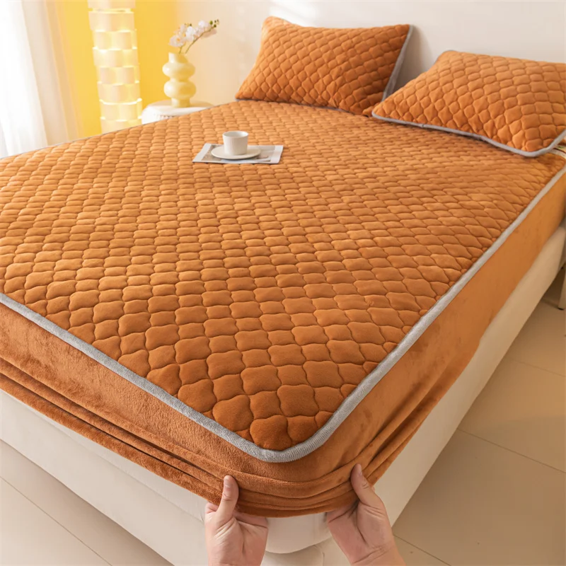 Super Thick Fleece Warm Mattress Cover All-inclusive Fluffy Quilted Fitted Bed Sheet Solid Color Mattress Protector for Winter