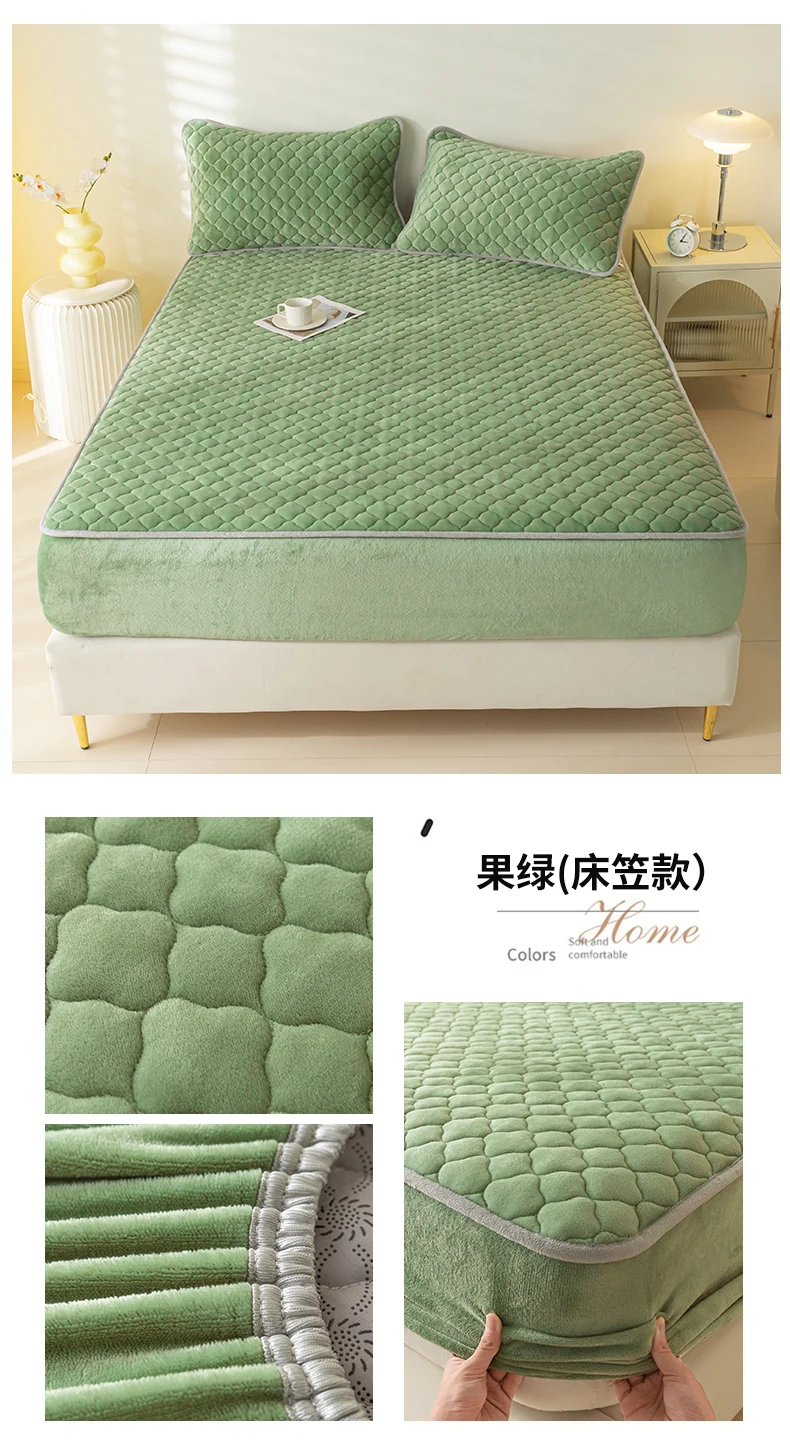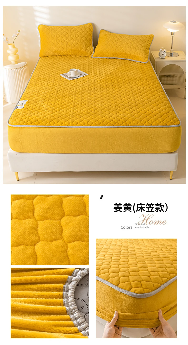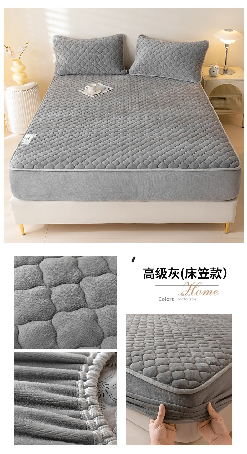 Super Thick Fleece Warm Mattress Cover All-inclusive Fluffy Quilted Fitted Bed Sheet Solid Color Mattress Protector for Winter