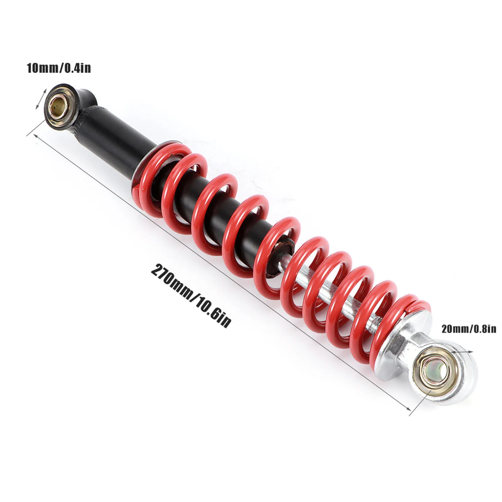 5. Specifications: The shocks absorber has a 10mm mounting hole diameter and a 270mm hole center distance, ensuring compatibility with a range of dirt pit bikes, ATVs, go karts, and motorcycles.