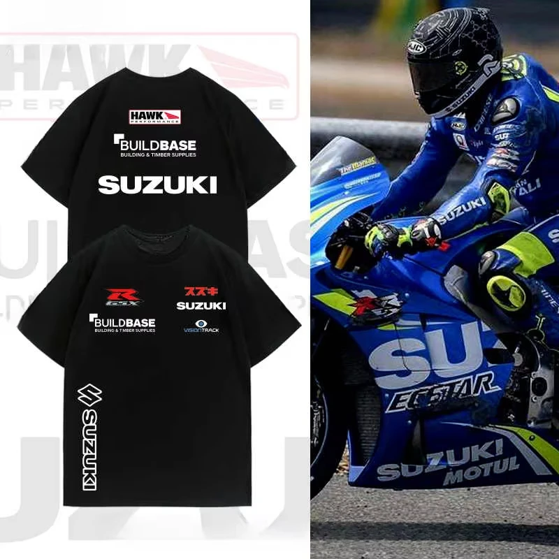 Suzuki MoToGP Team Cycling Wear Motorcycle Round Neck T-shirt Loose Short Sleeve Men and Women Pure Cotton Printing Summer
