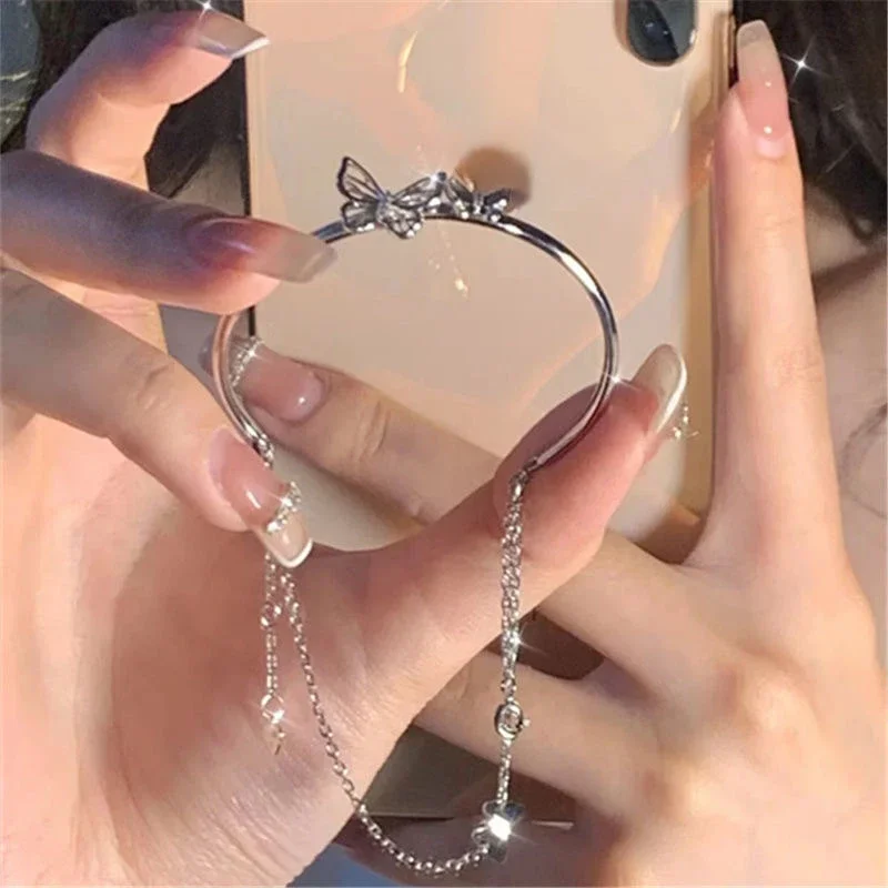 Sweet Tassel Butterfly Woman Bracelet Heart Double Layer Luxury Charm Bracelet Aesthetic Accessories 2024 New