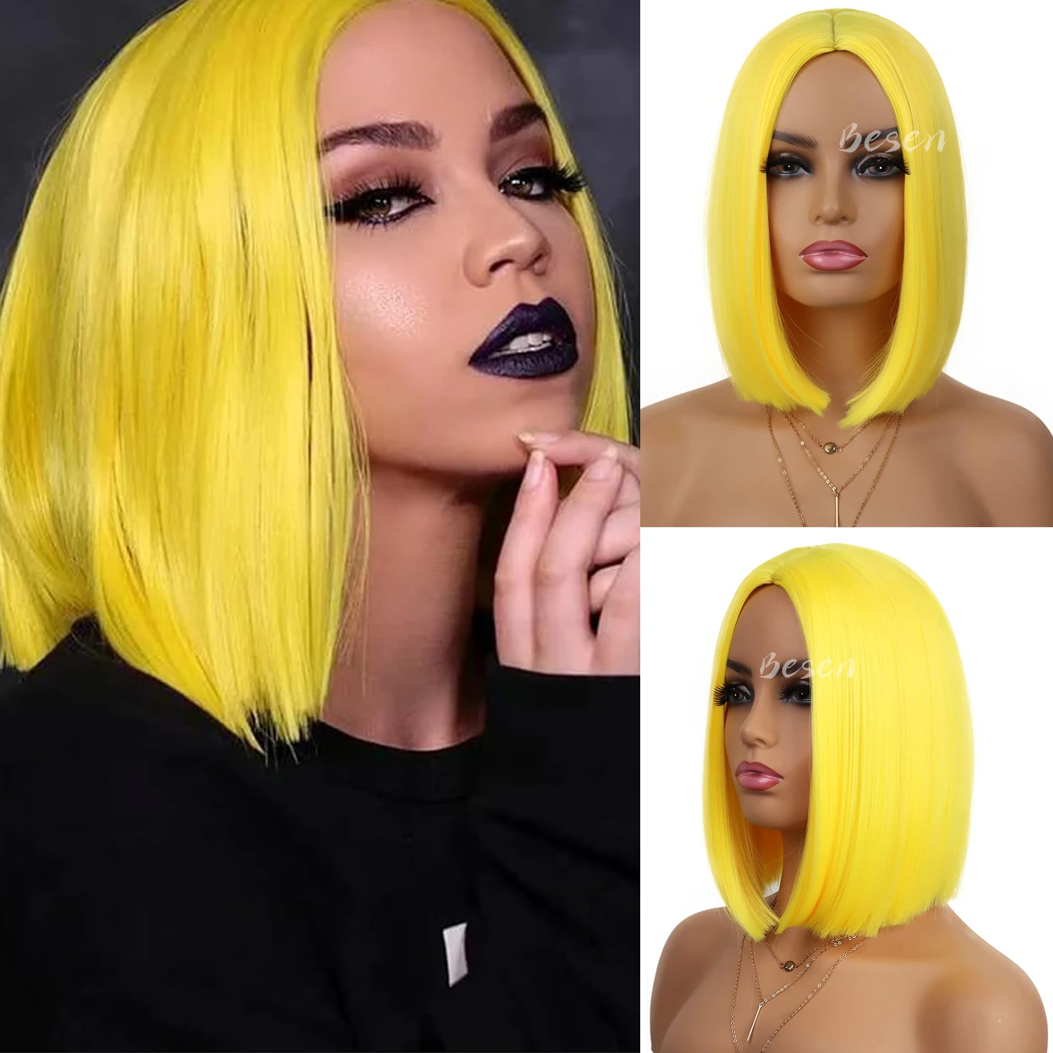 Synthetic Bob Wig 12inch Short Bob Stright Hair Wig Heat Resistant Middle Parting Colorful Wigs for Party Custume Cosplay Use