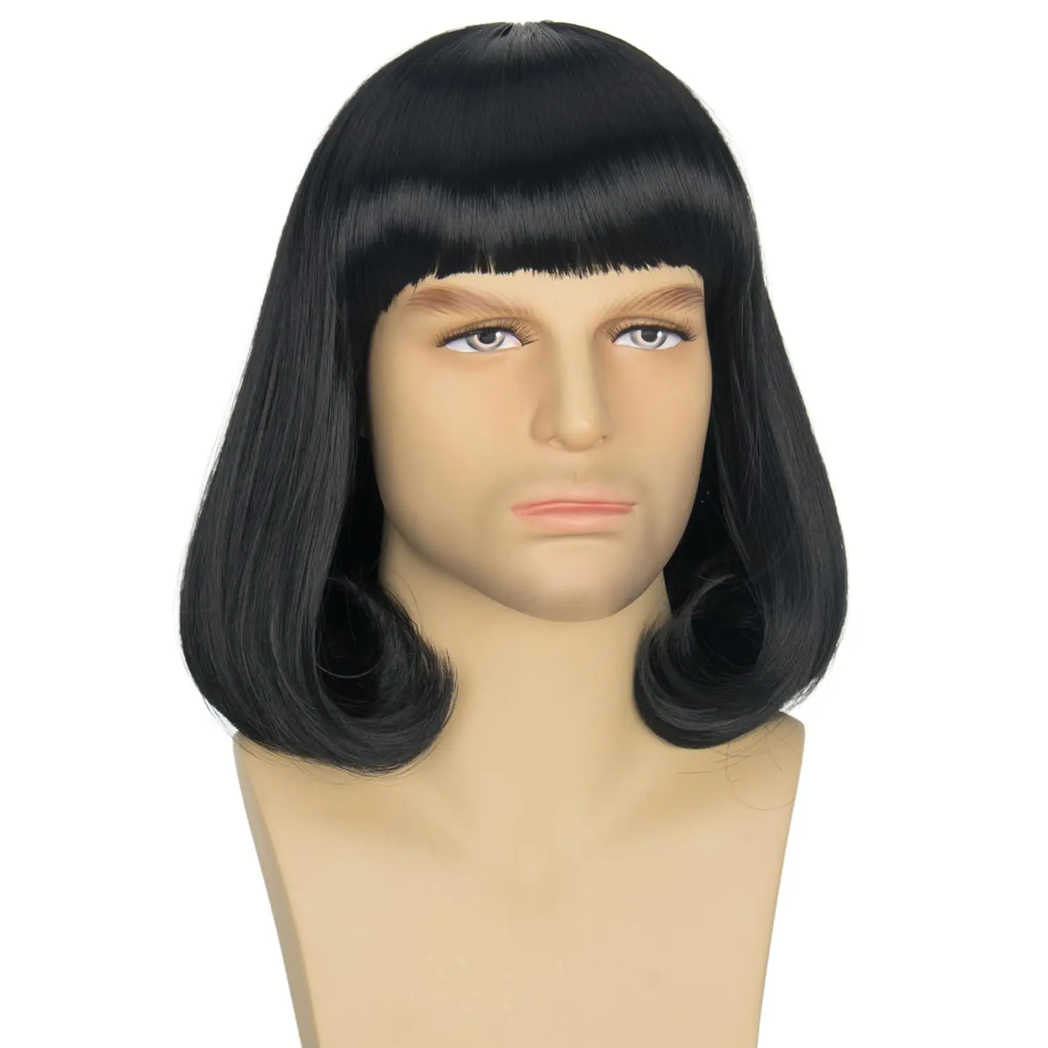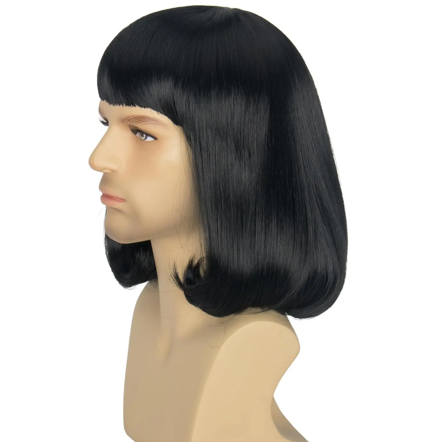 Synthetic Men Unisex Black Short Bob Wig with Bangs Short Straught Wig for Men Halloween Costume Cosplay Funny Wigs Anime Wig