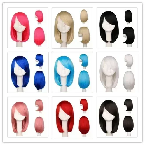 Synthetic short bob straight hair with trimmable bangs Lolita Ombre pink red blue purple cosplay wig for women short wigs