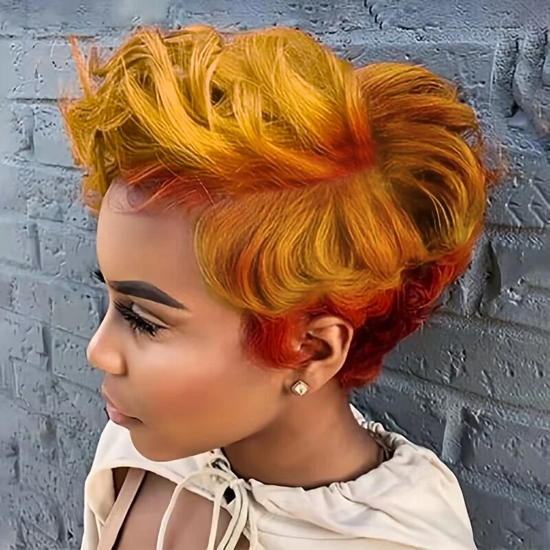 Synthetic Short Hair Wigs for Black/White Women Yellow and Red 2 Tones Hairstyles Short Wigs with Bangs
