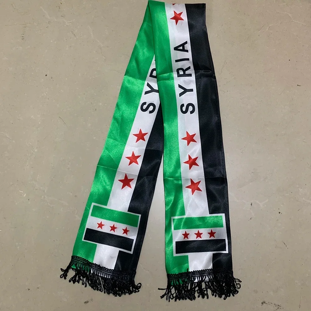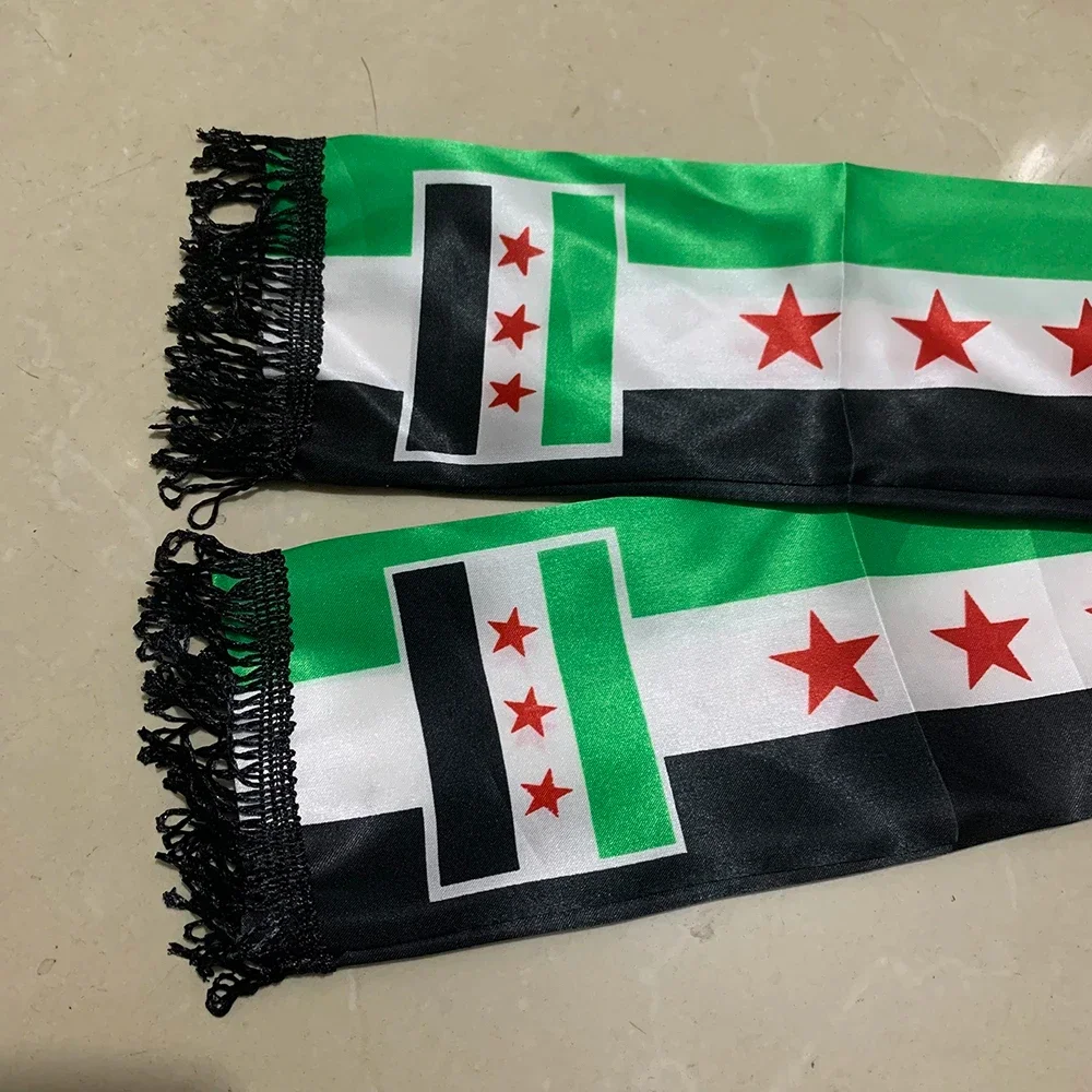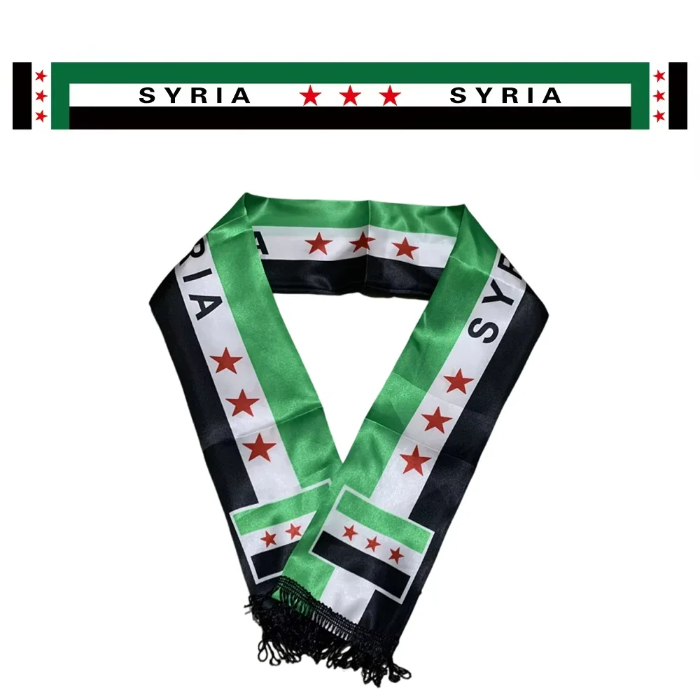 Syria Satin Scarf 14x135cm The Syrian Arab Republic Syrian three Star Scarf Banner Syria Flag Scarf Banner