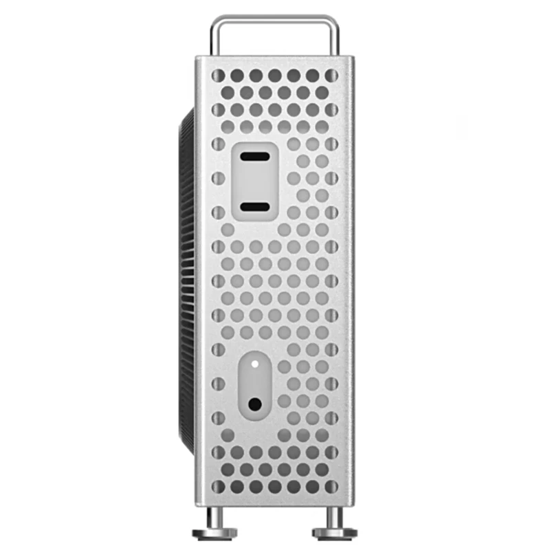 The chassis stand not only has precise openings at the power buttons on the front and rear panels but also has metal pads on the bottom to enhance stability, allowing the host to be placed firmly.