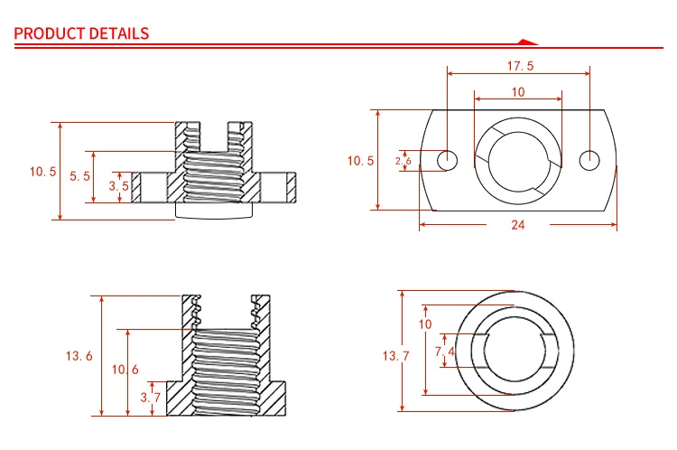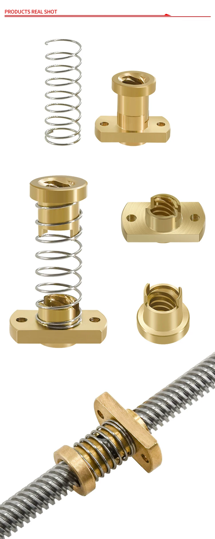 T8 Anti Backlash Spring Loaded Nut Brass Elimination Gap Nut Used to upgrade Ender 3 CR-10 T8 Lead Screw DIY CNC 3D Printer