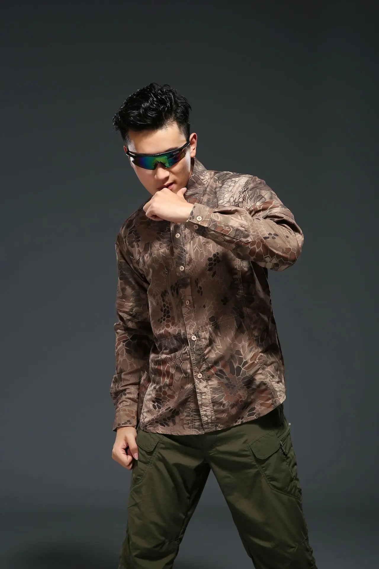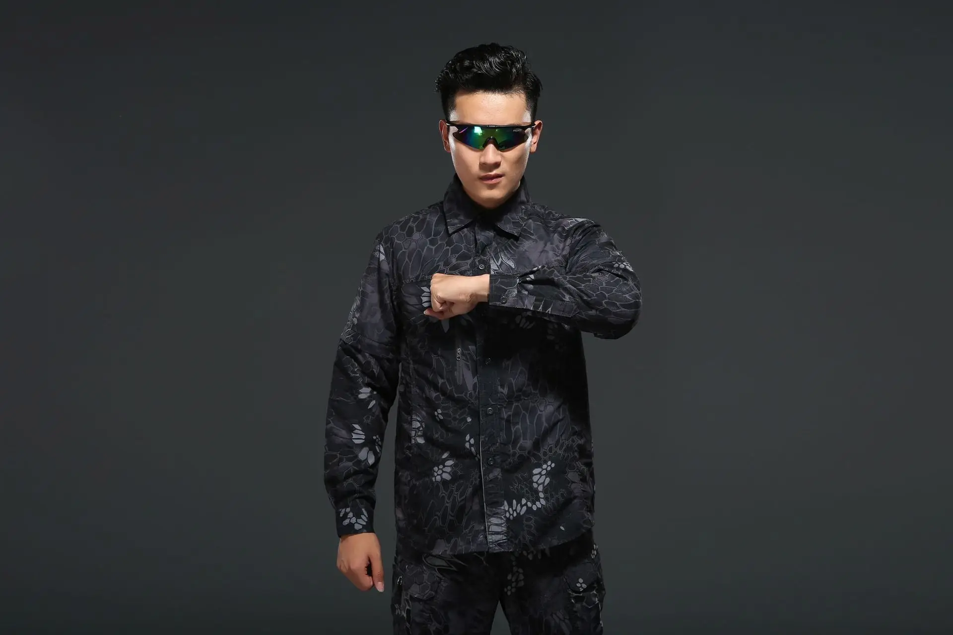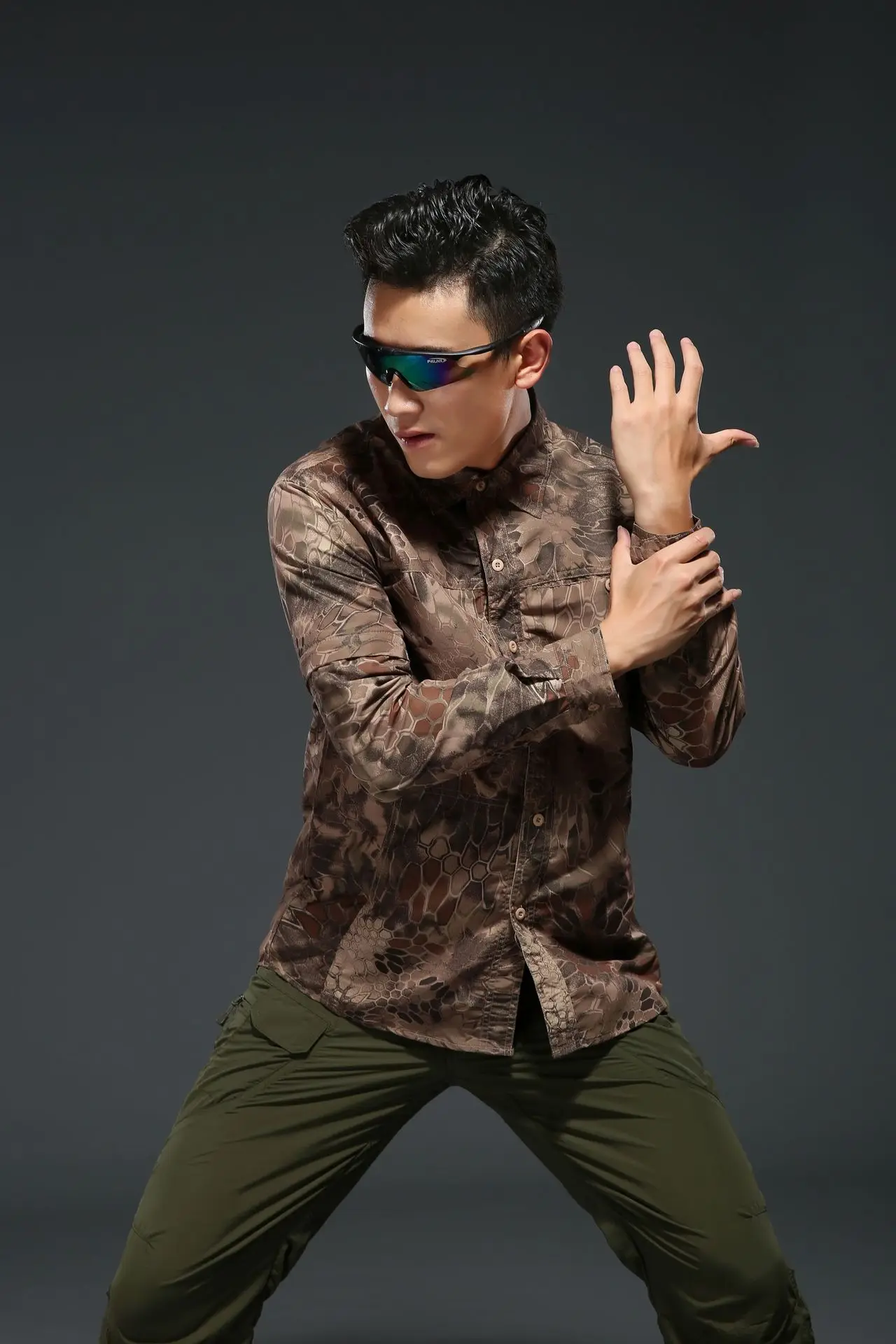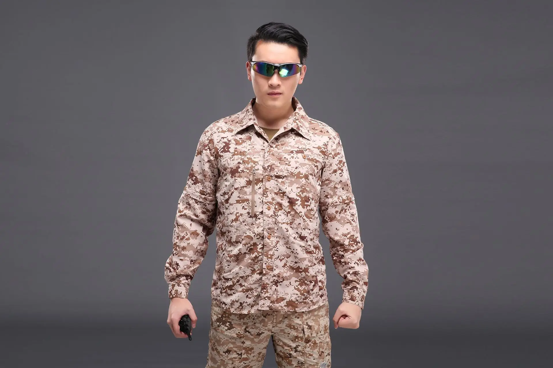 Tactical Shirt Men Military Camouflage Shirts Summer Quick Dry Combat Long Sleeve Shirts Outdoor Breathable Hiking Field Tops