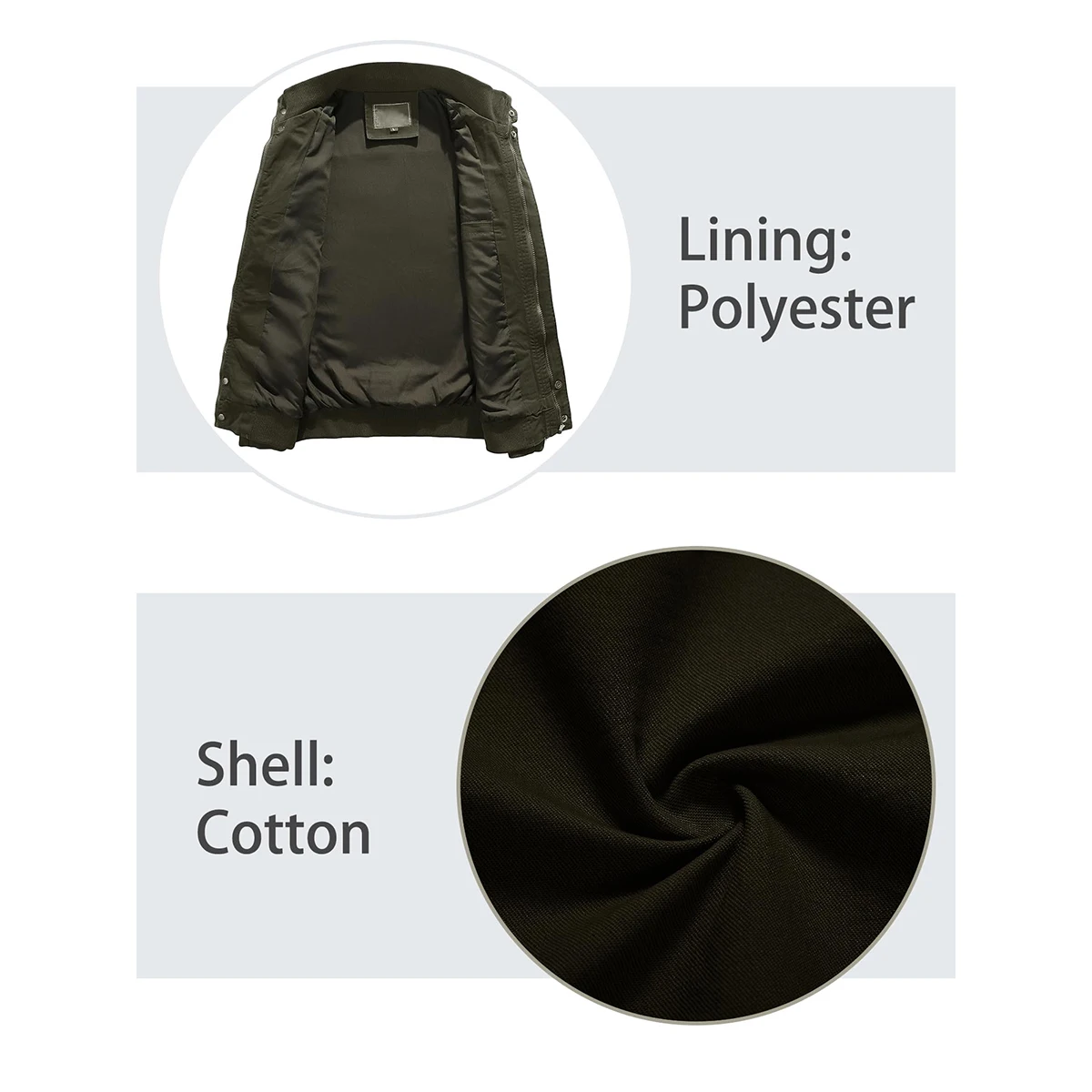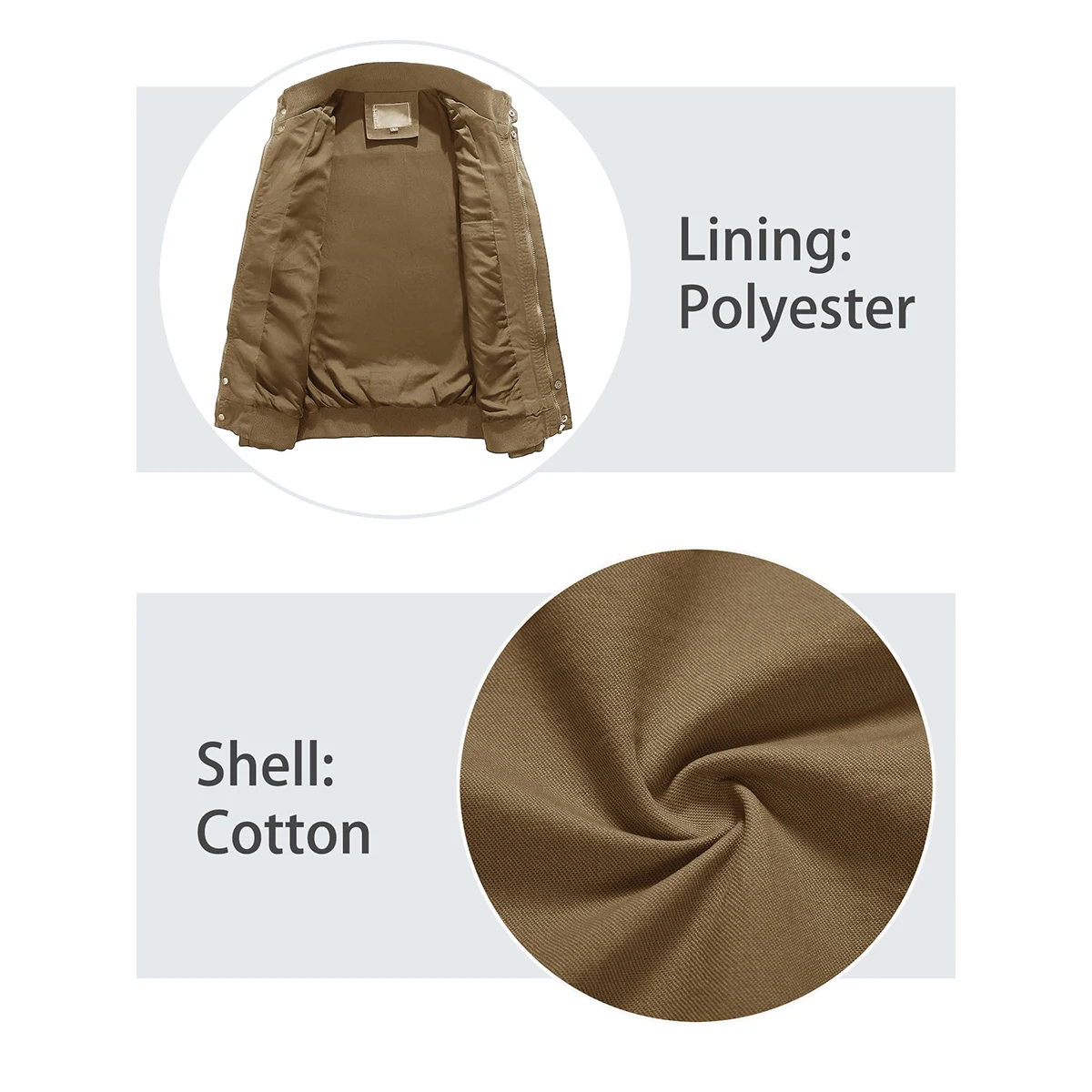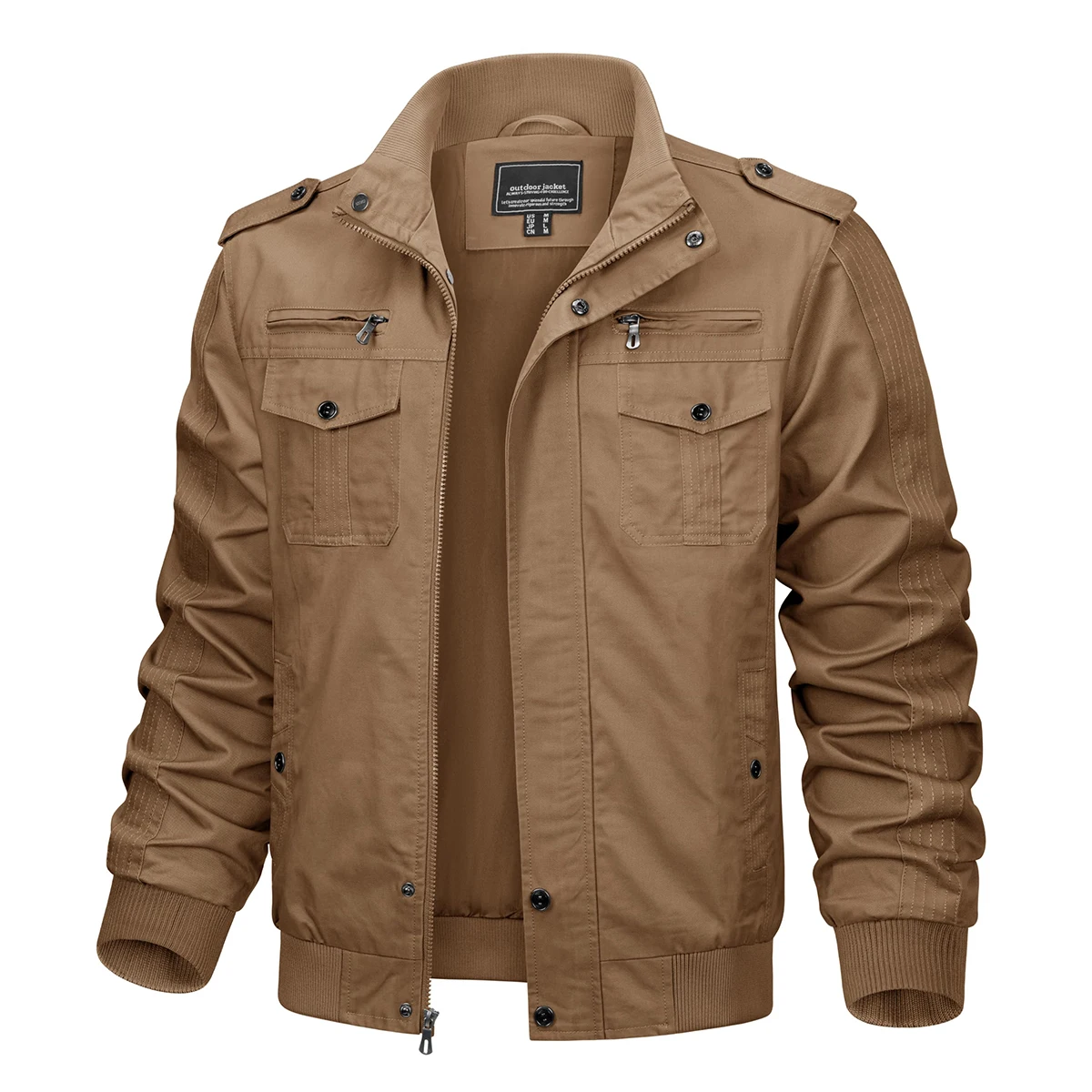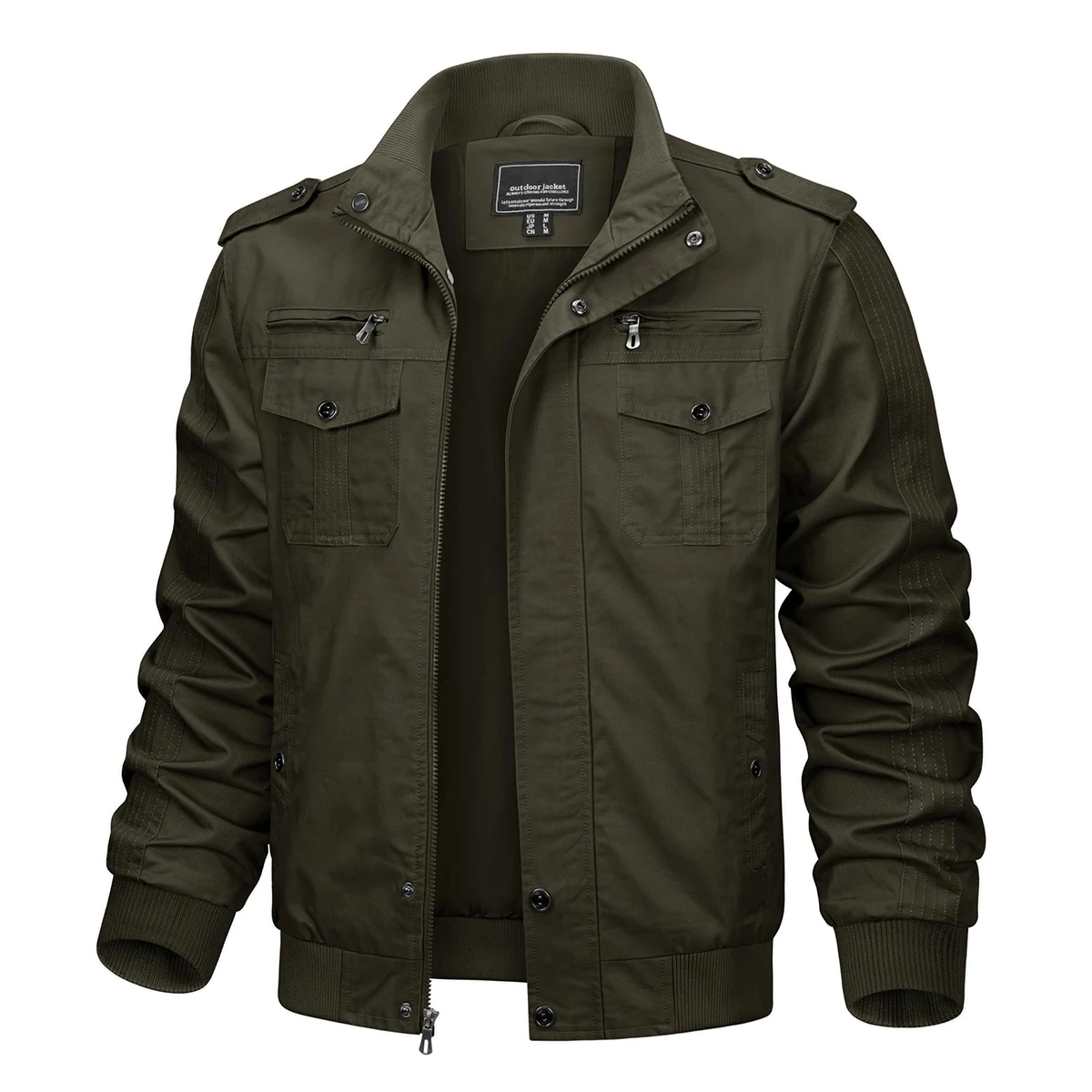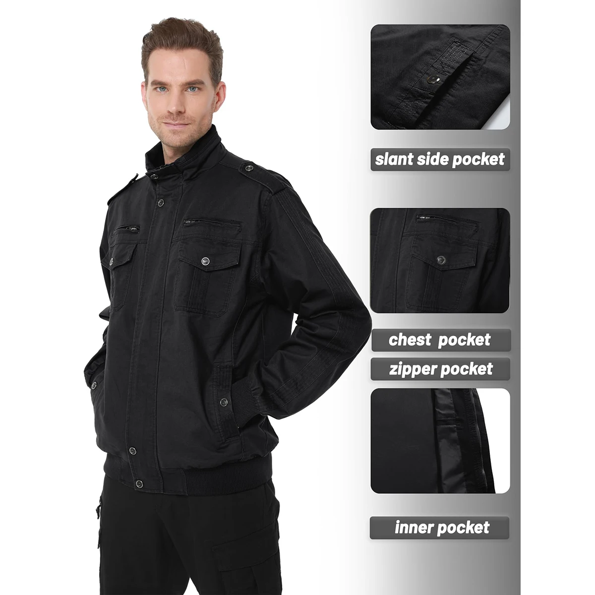 TACVASEN Autumn Men’s Bomber Jackets Cotton Lightweight Multi Pockets Zip Front Stand Collar Windproof Casual Work Cargo Jacket