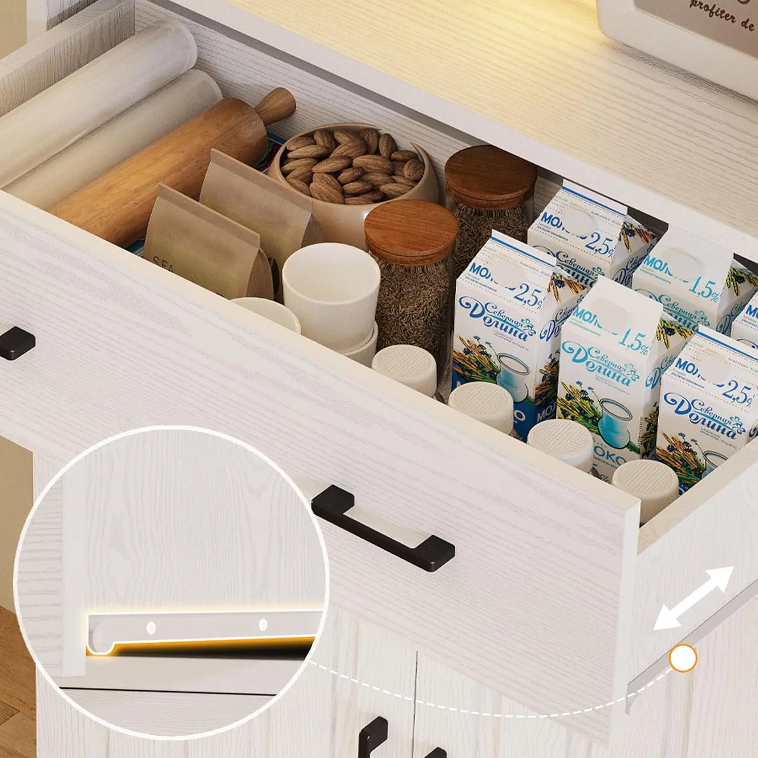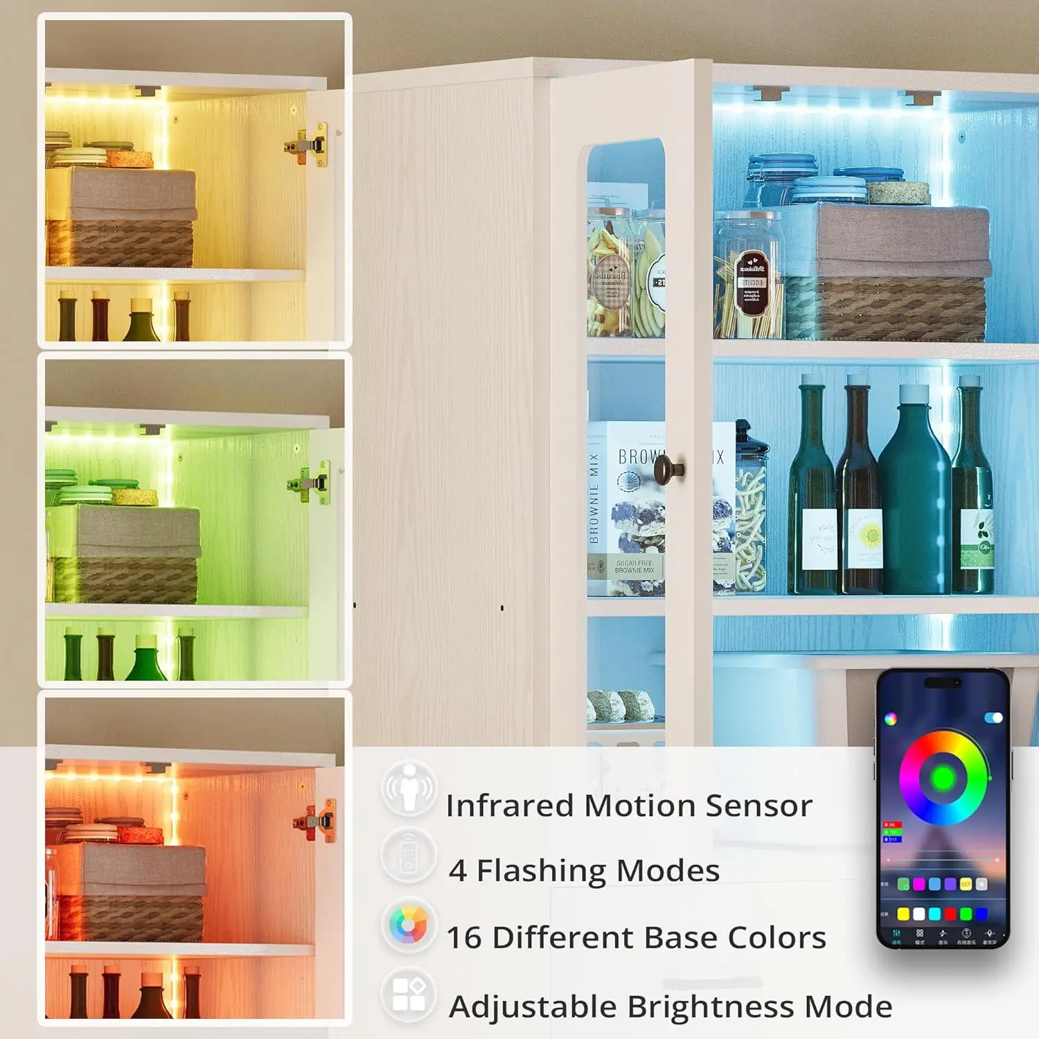 • Stability & Safety: The pantry includes an anti-tip kit that prevents tipping for added safety,Its bottom base offers stable support,Increase the load-bearing capacity of the wood cabinetTall Kitchen Pantry Storage Cabinet with LED Lights Acrylic Glass Door Drawer and Adjustable Shelves for  Dining Room