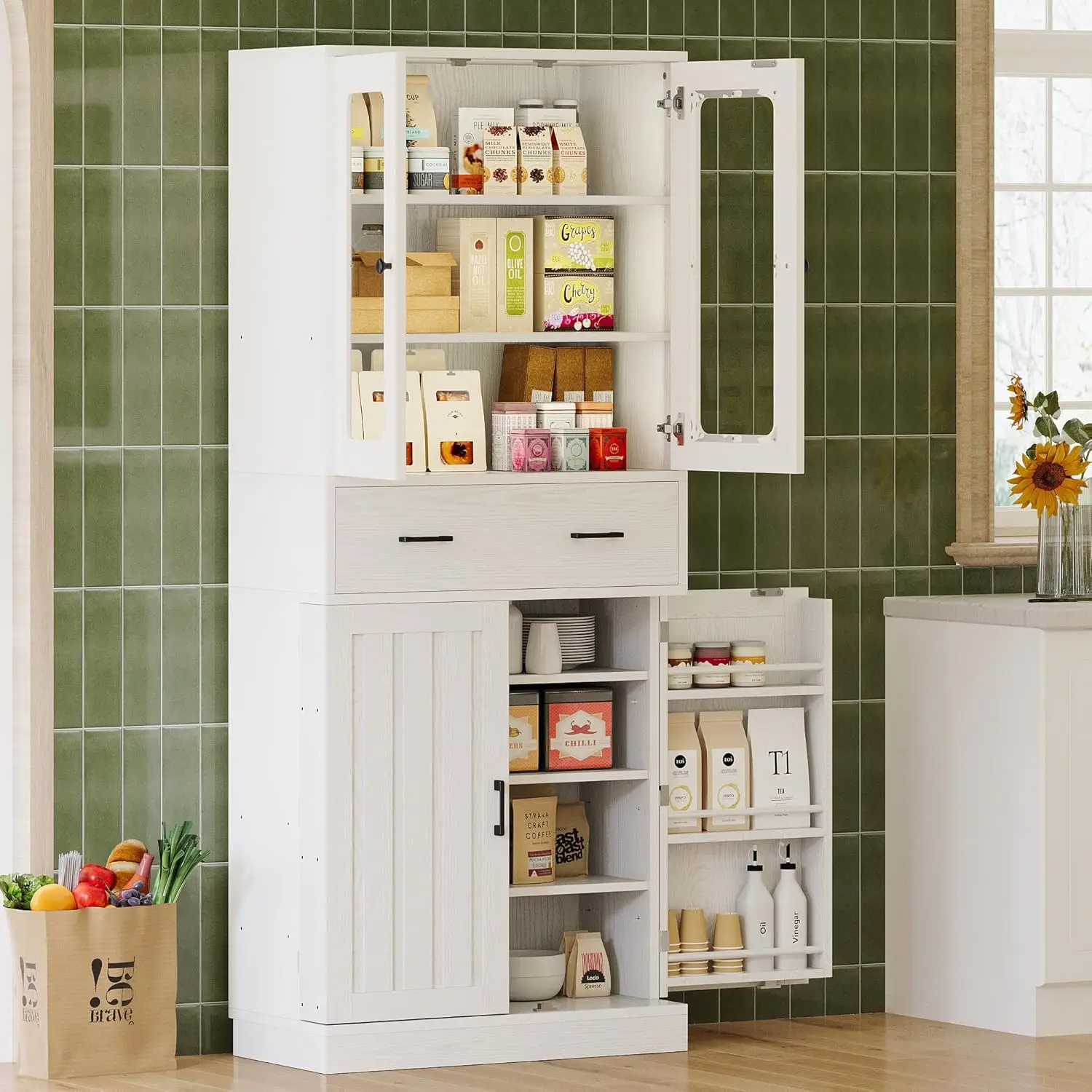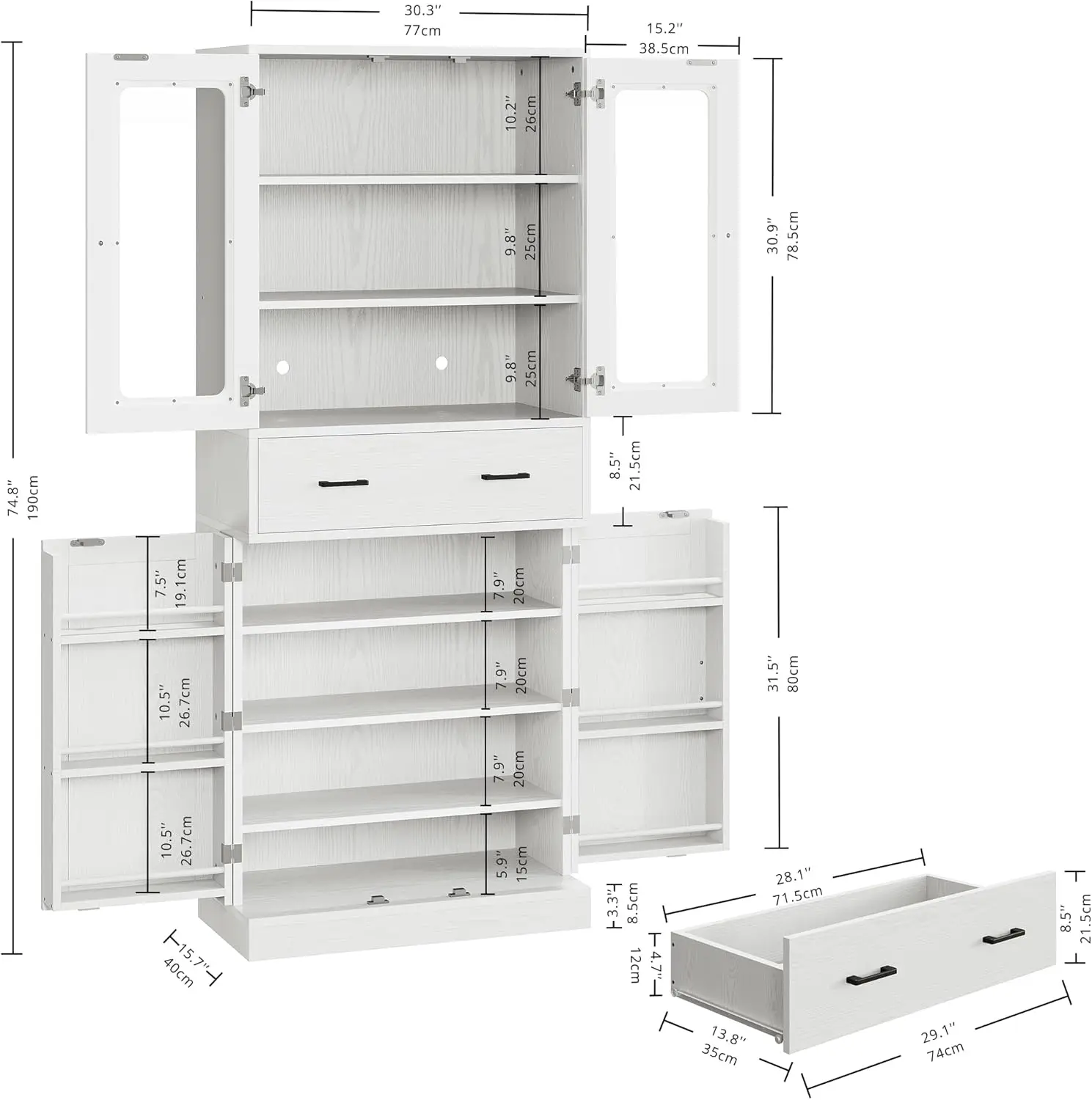• Elegant Appeal: This sleek white pantry cabinet with a clear acrylic door enhances its beauty, featuring smooth lines and a modern elegance that blends seamlessly with any home style, reflecting your fine taste