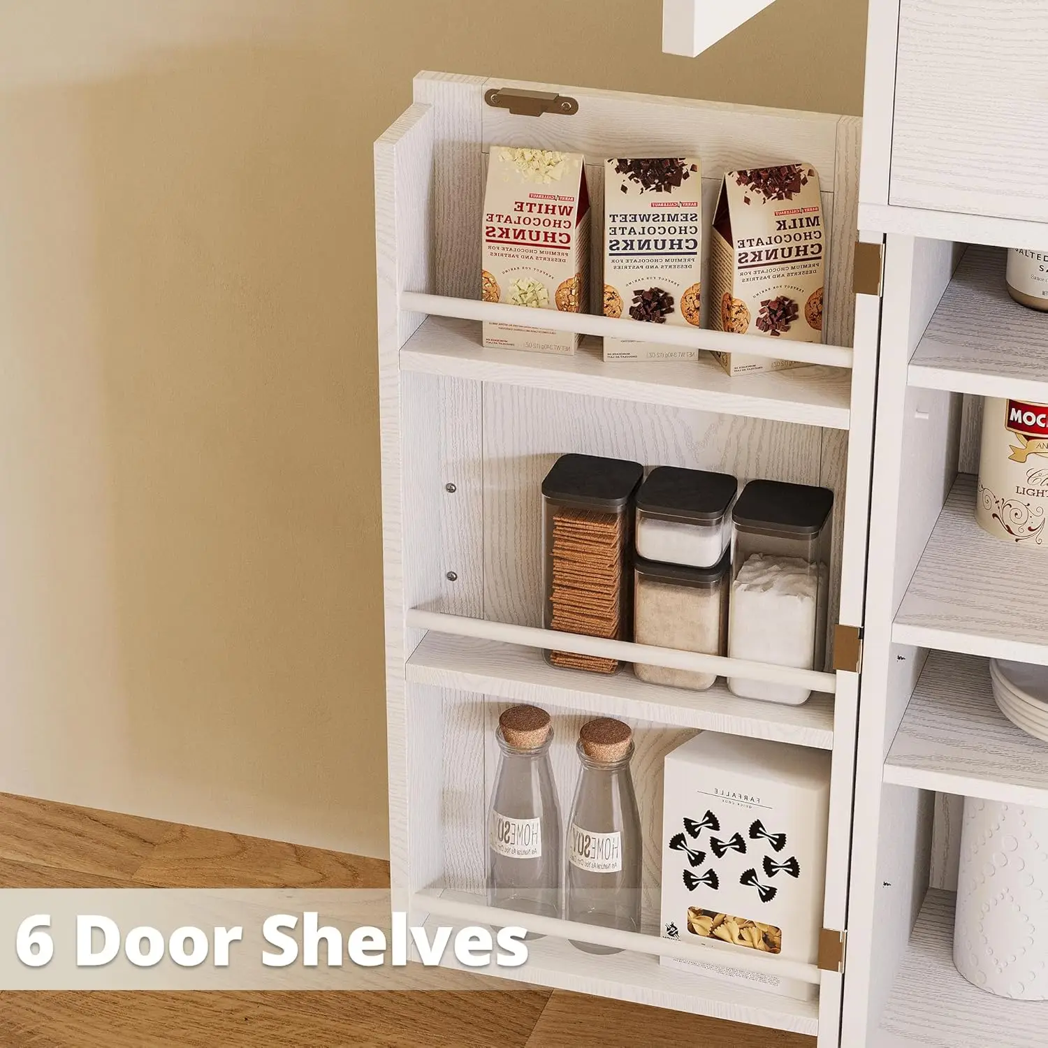 • Larger Kitchen Pantry: Overall Dimension 30.3″W* 15.7″D * 74.8″H,This pantry cabinet offers ample visible and hidden storage, tidying kitchen clutter. Perfect for kitchen supplies, snacks, and coffee machine