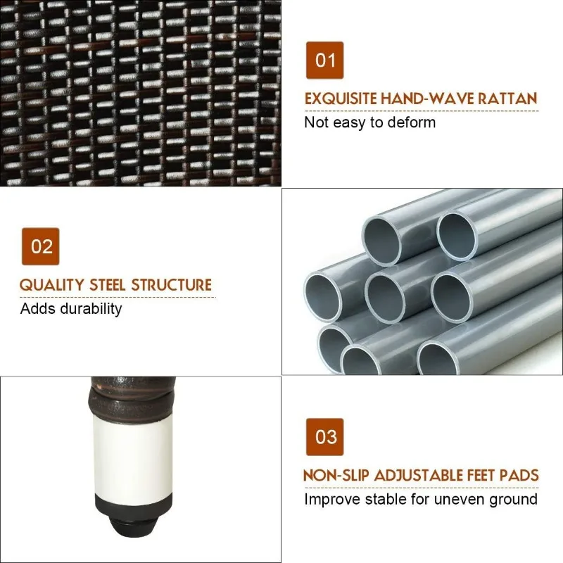 - Large Dining Table W/ Acacia Top: The outdoor dining set comes with a large dinging table, which provides enough space for dining. Besides, unlike other traditional tempered glass table top, this dinging table is equipped with acacia wood top, which is more safer. Other than that, supporting by four solid feet, this dinging table is stable and heavy-duty.