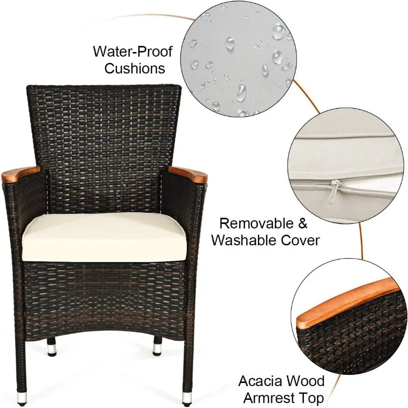 - Water-proof Cozy Cushions: In order to enhance comfy, this patio dining set comes with 6 soft cushions which are made of premium sponge and water-proof polyester cover. Benefit from quality materials, the cushions are not easy to collapse and suitable for outdoor use. More, with smooth zippers, the cover of cushion is removable and washable.