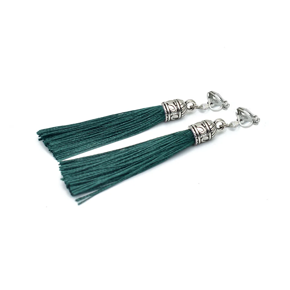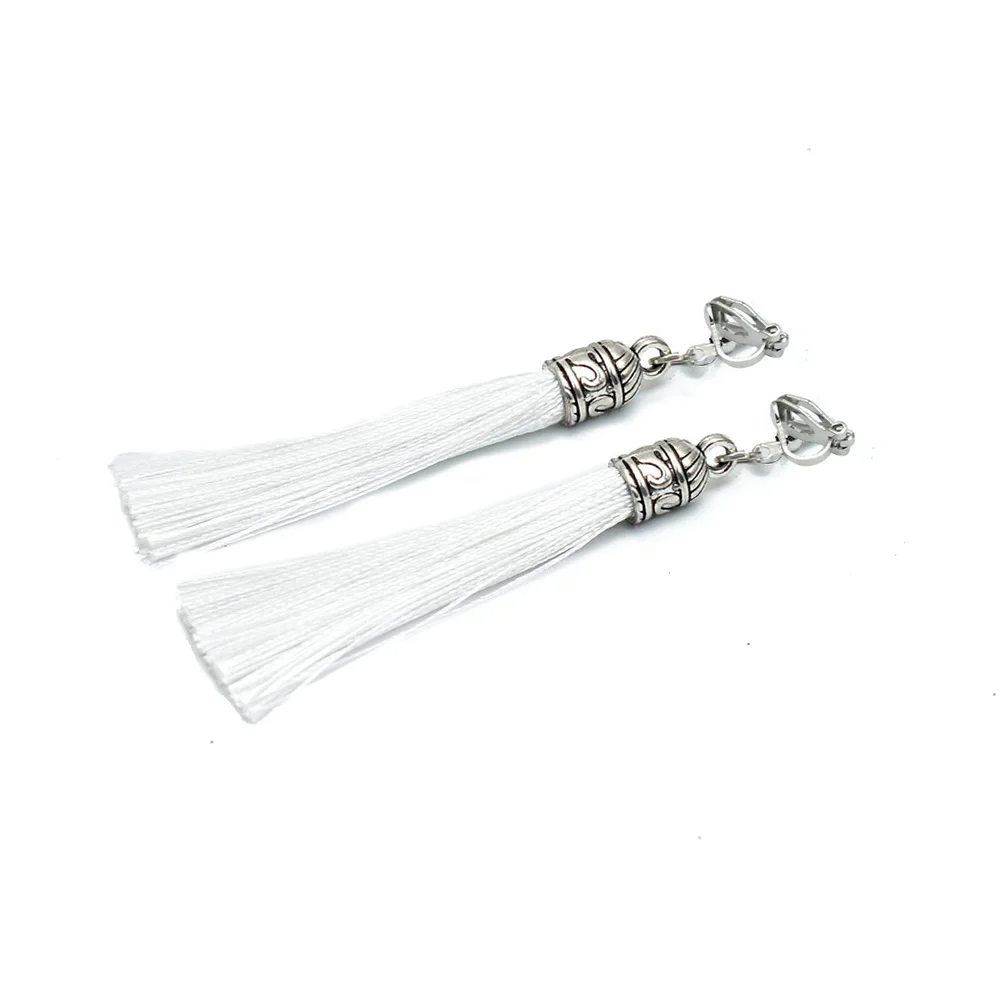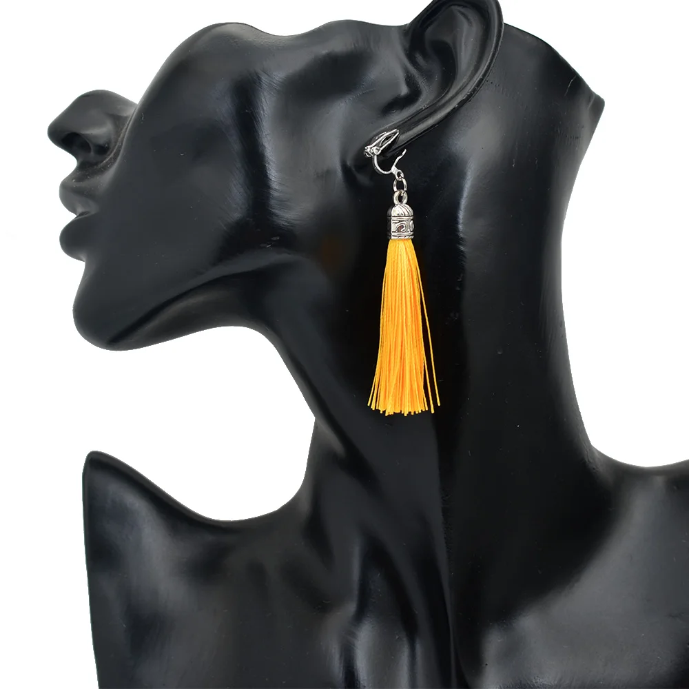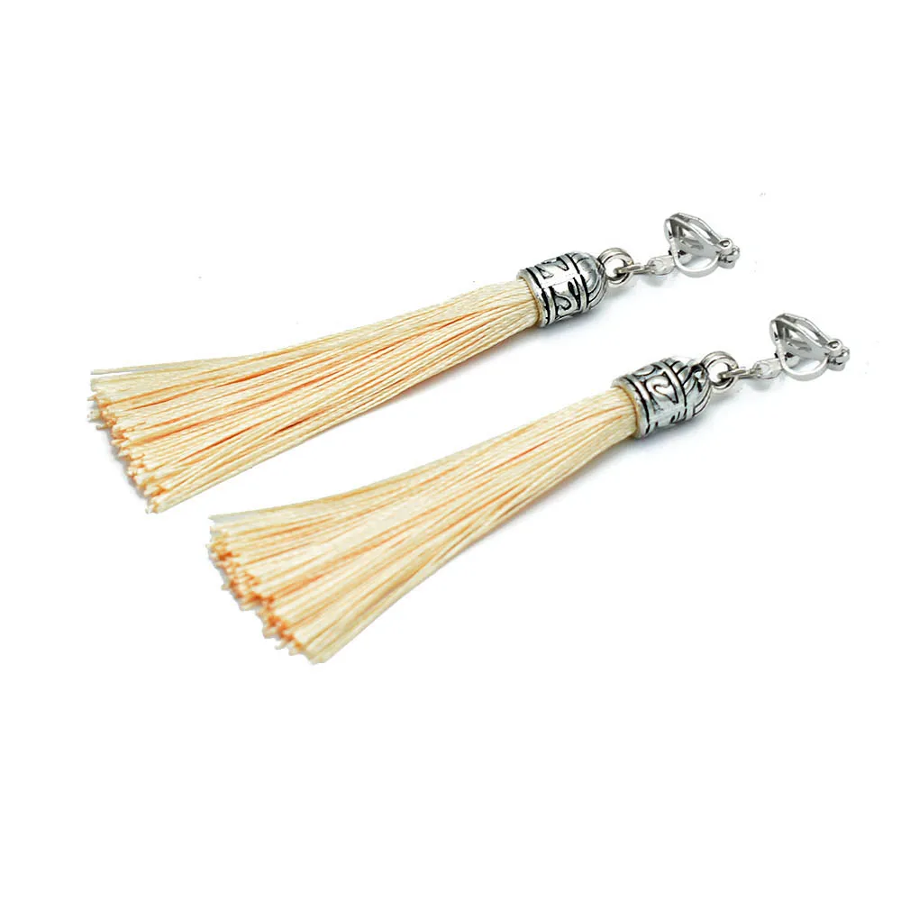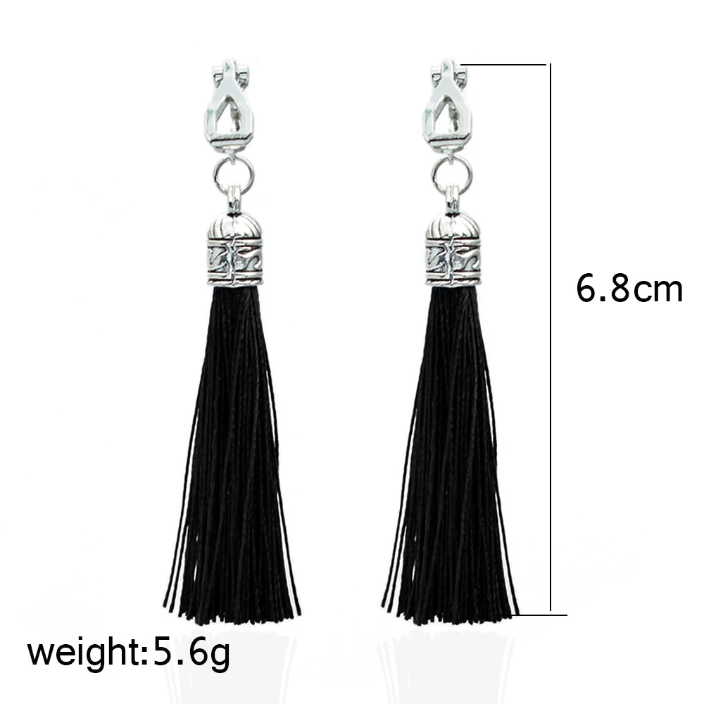 Tassel Clip Earrings For Women Bohemia Non Pierced Wedding Jewelry Antique Silver Color Long Ear Cuff Earring Fringe Earings