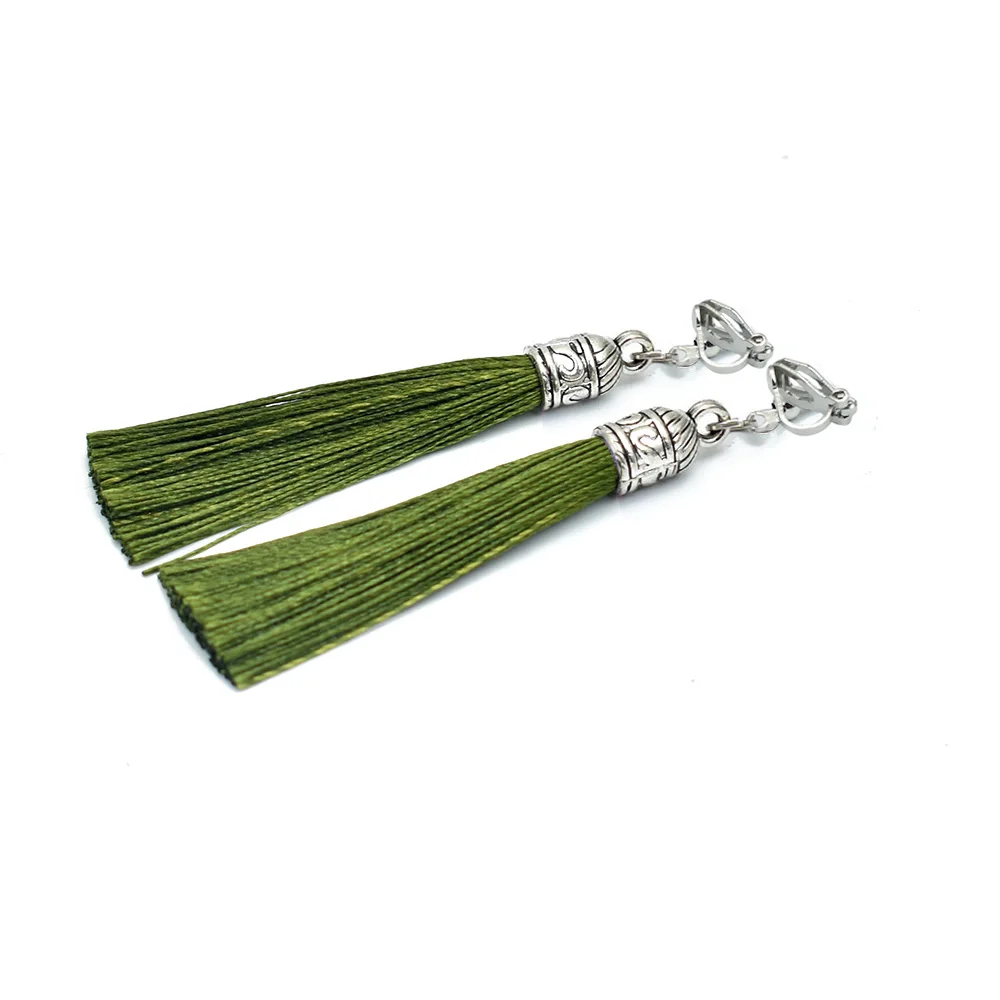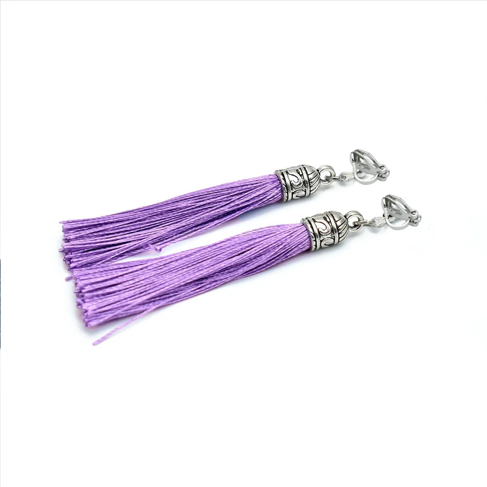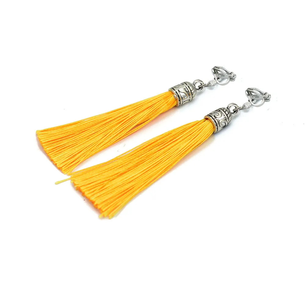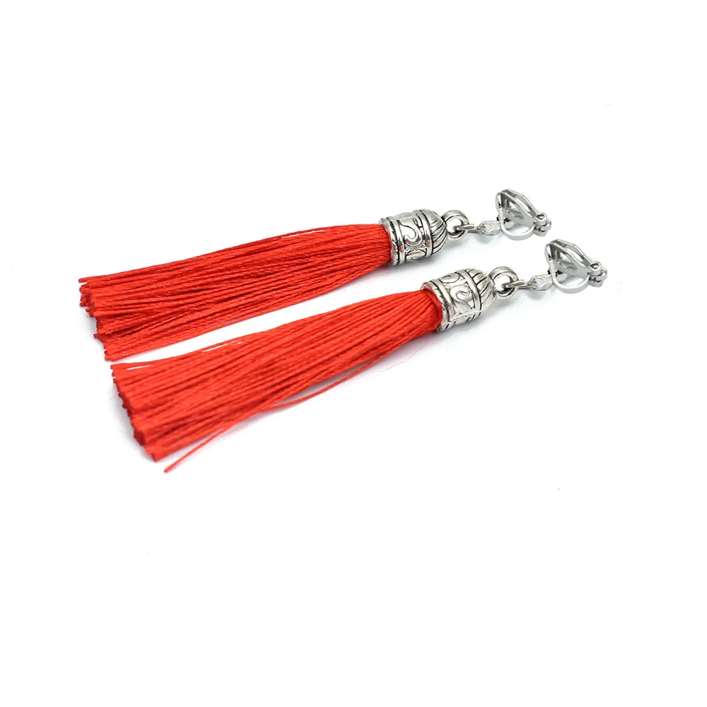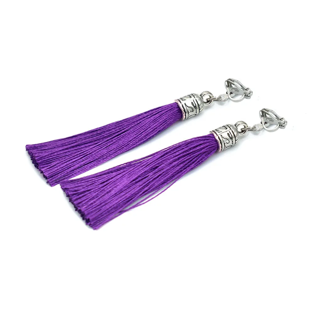 Tassel Clip Earrings For Women Bohemia Non Pierced Wedding Jewelry Antique Silver Color Long Ear Cuff Earring Fringe Earings