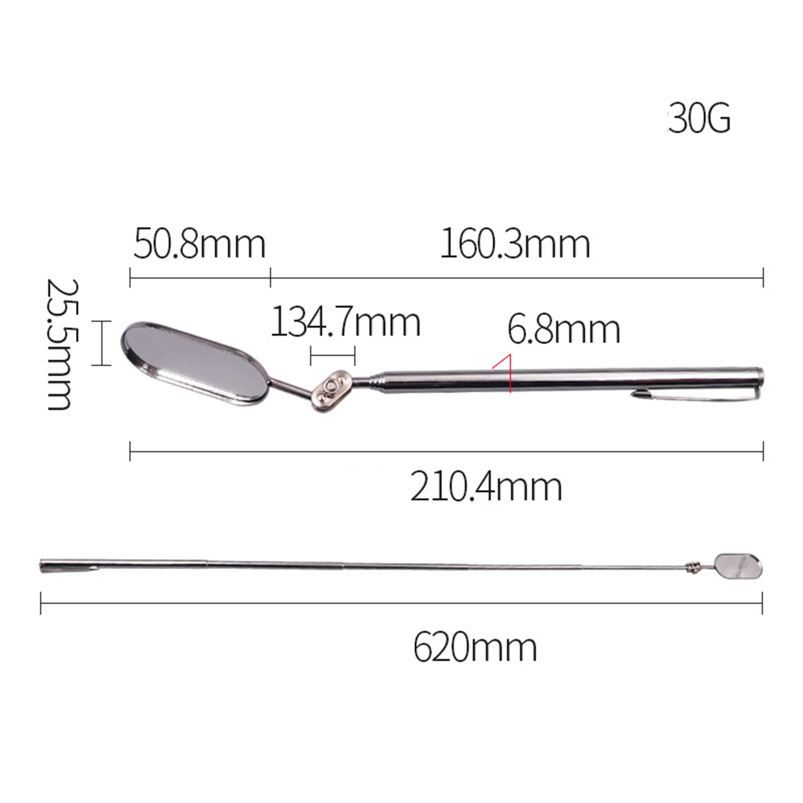 【Telescopic】The length of the Telescoping Inspection Mirror can be adjusted telescopically, the shortest length is about 21cm/8.27inch, and the maximum telescopic length is about 62cm/24.41inch.
