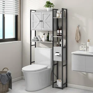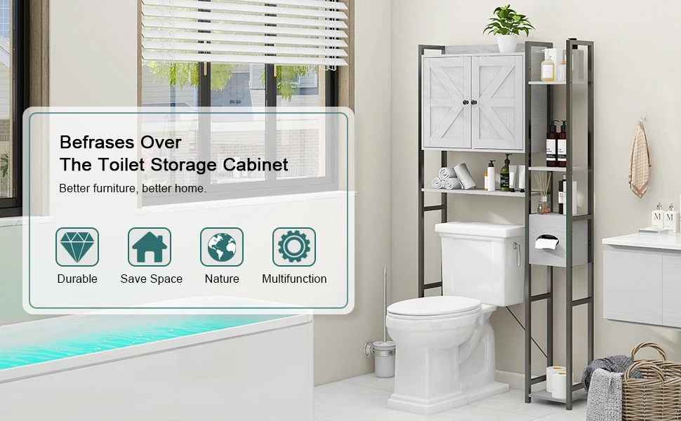 Designed with longevity in mind, this over the toilet storage cabinet seamlessly combines durability with space-saving efficiency. Crafted from metal and wood. Beyond its sturdy construction, the cabinet’s multifunctional design optimizes space, ensuring every corner serves a purpose.