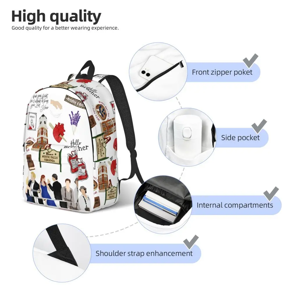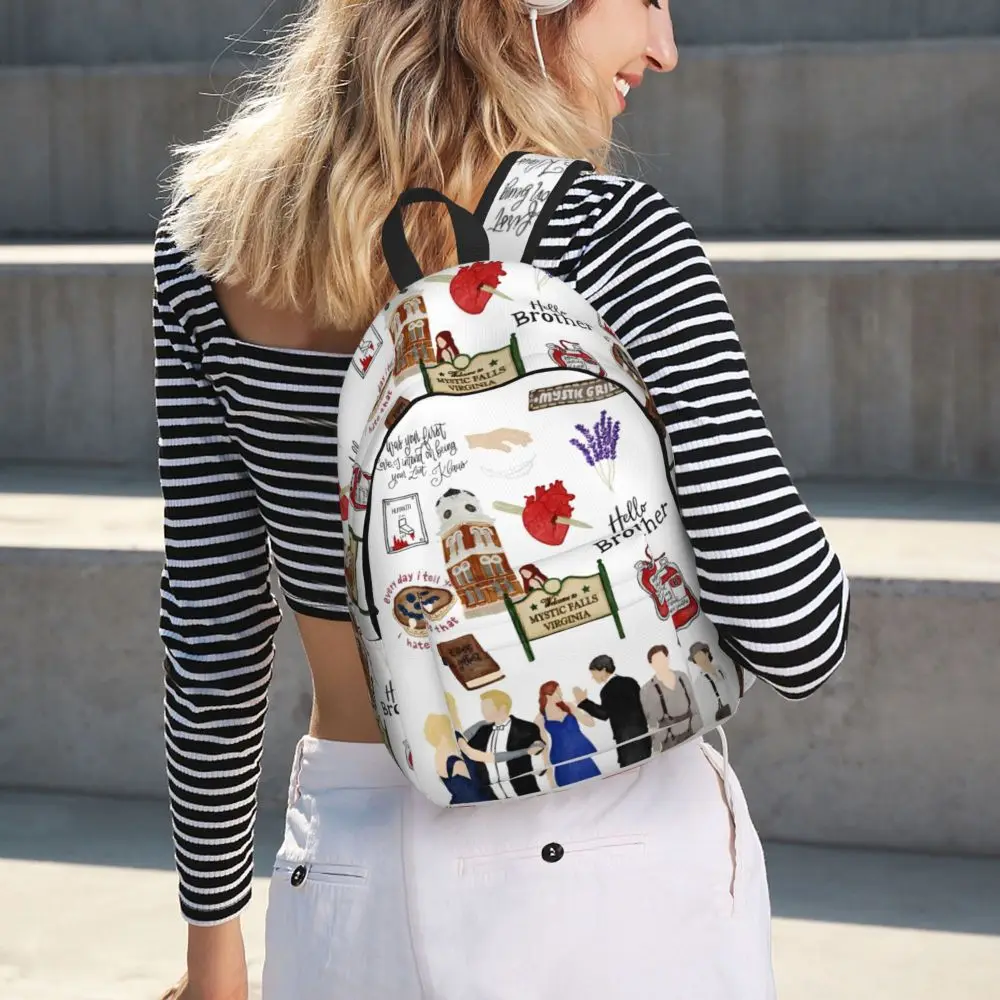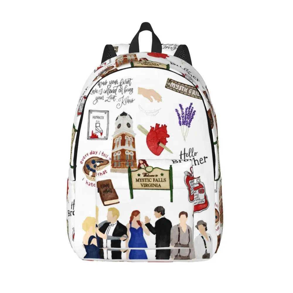 The Vampire Diaries Cartoon Backpack for Men Women Teenage High School Business Daypack TV Series Laptop Canvas Bags with Pocket