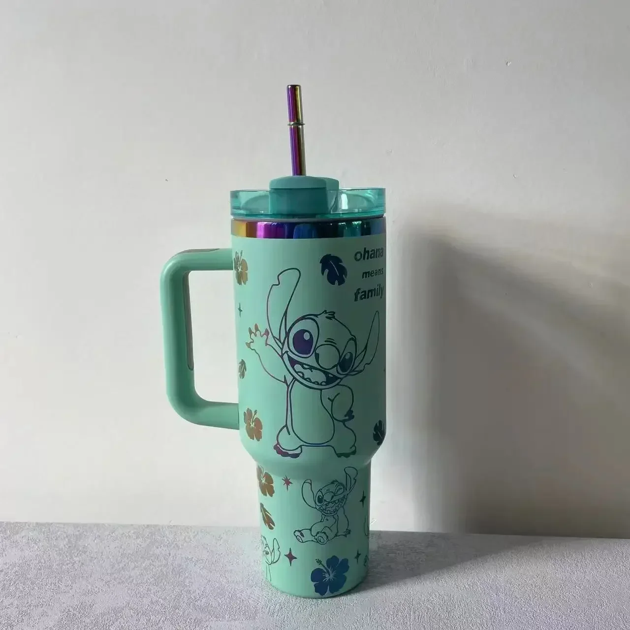 Thermal Coffee Stitch Cup with Straw Stainless Steel Vacuum Insulated Tumbler 40oz Thermal Iced Travel Cup for Outdoor