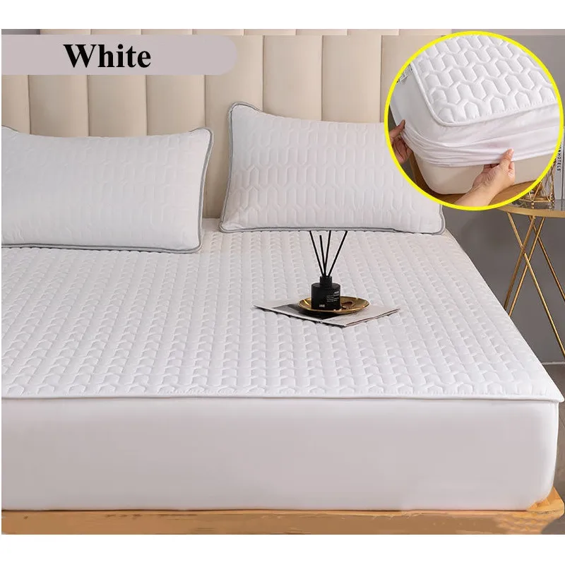Thick Quilted Mattress Cover Soft Breathable Elastic Double Fitted Bed Sheet with Deep Pocket Solid White Matress for Bed