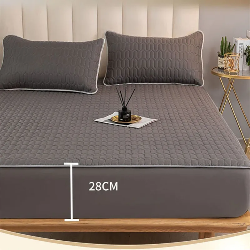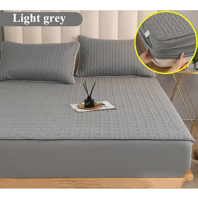 This product is a solid-color non-slip quilted bed sheet, made of high-count, high-density skin-friendly cotton fabric, printed and dyed with imported materials, skin-friendly and soft, and guaranteed not to fade and no ball. The filling is made of high-quality feather silk cotton, and high-density quilting embroidery machinery. It makes the product more resistant to repeated washing without deformation, simple installation, convenient disassembly and cleaning, and is an indispensable product for household life.