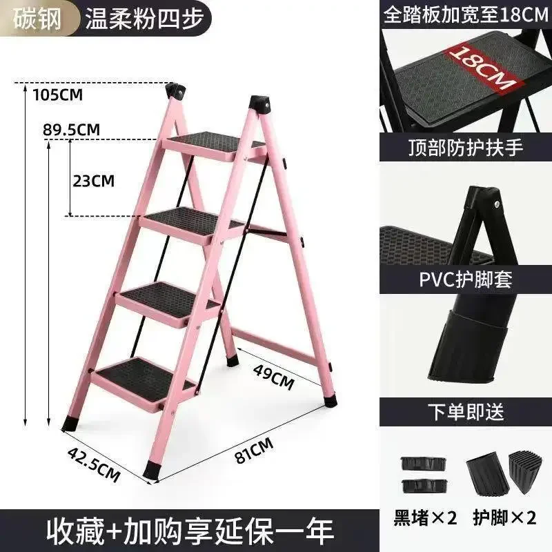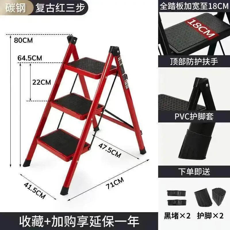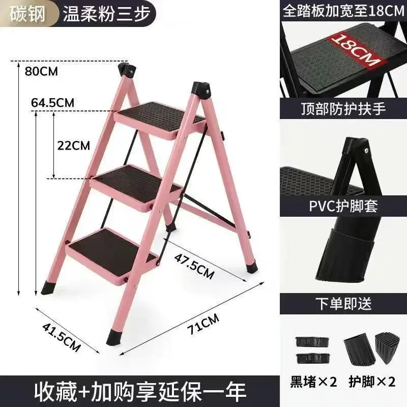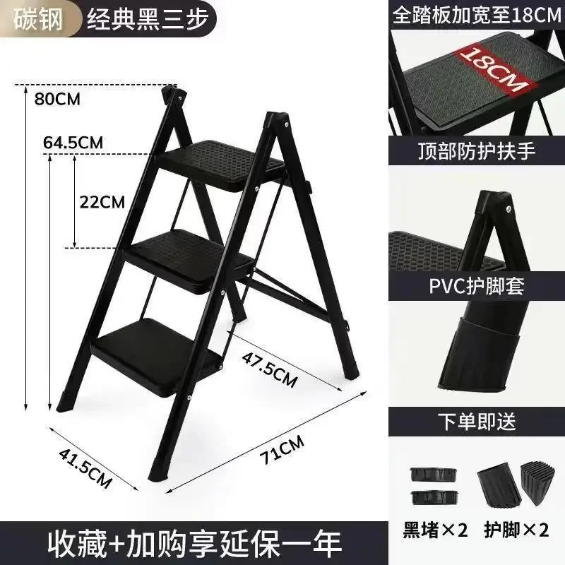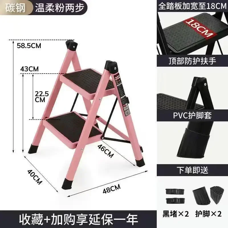 Thickened Carbon Steel Folding Ladder Strong Bearing Capacity 2/3-Step Household Storage Rack Potting Shelf Home Decor