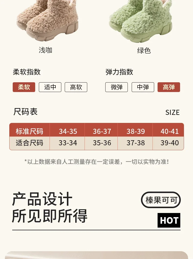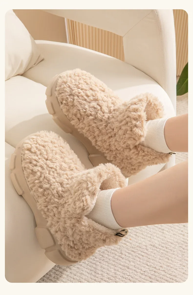 Thickened Plush Fur Warmth Household Snow Boots Cotton Women Slippers Home Boots Simple Solid Color Winter Fluffy Platform Shoes