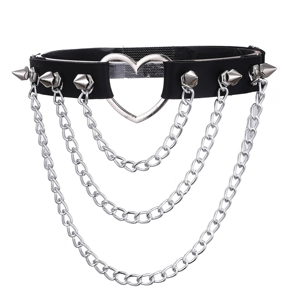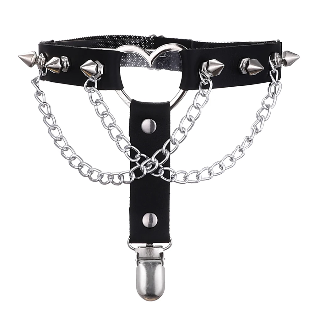 Thigh Chains for Women Leg Chain Black Leather Heart Spiked Garter Belt Women’s Body Jewelry Festival Rave Accessories