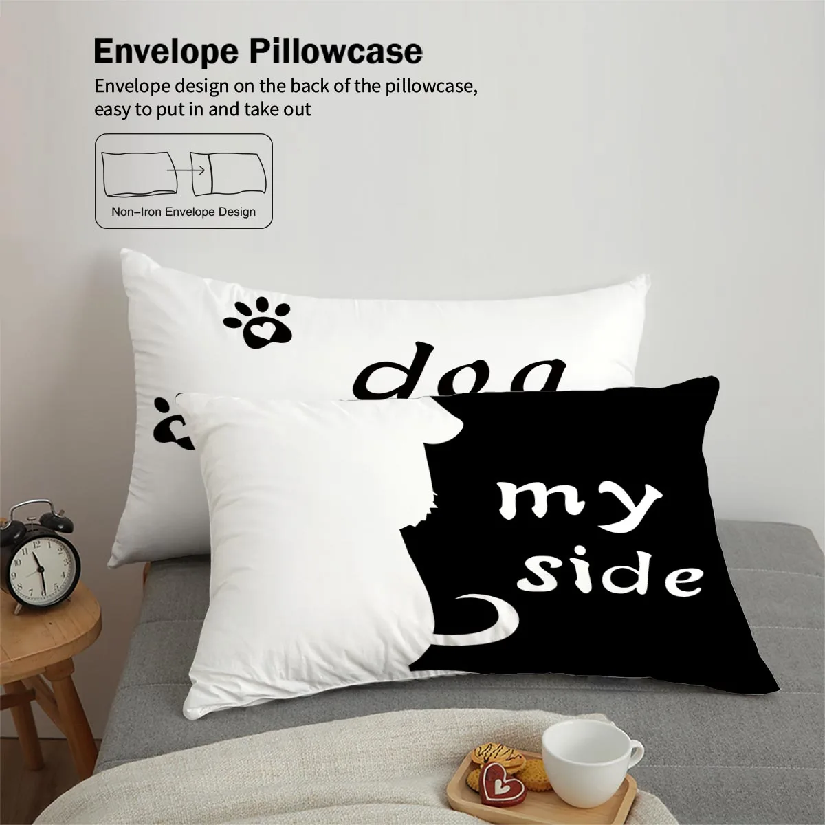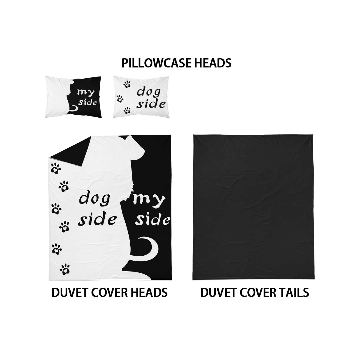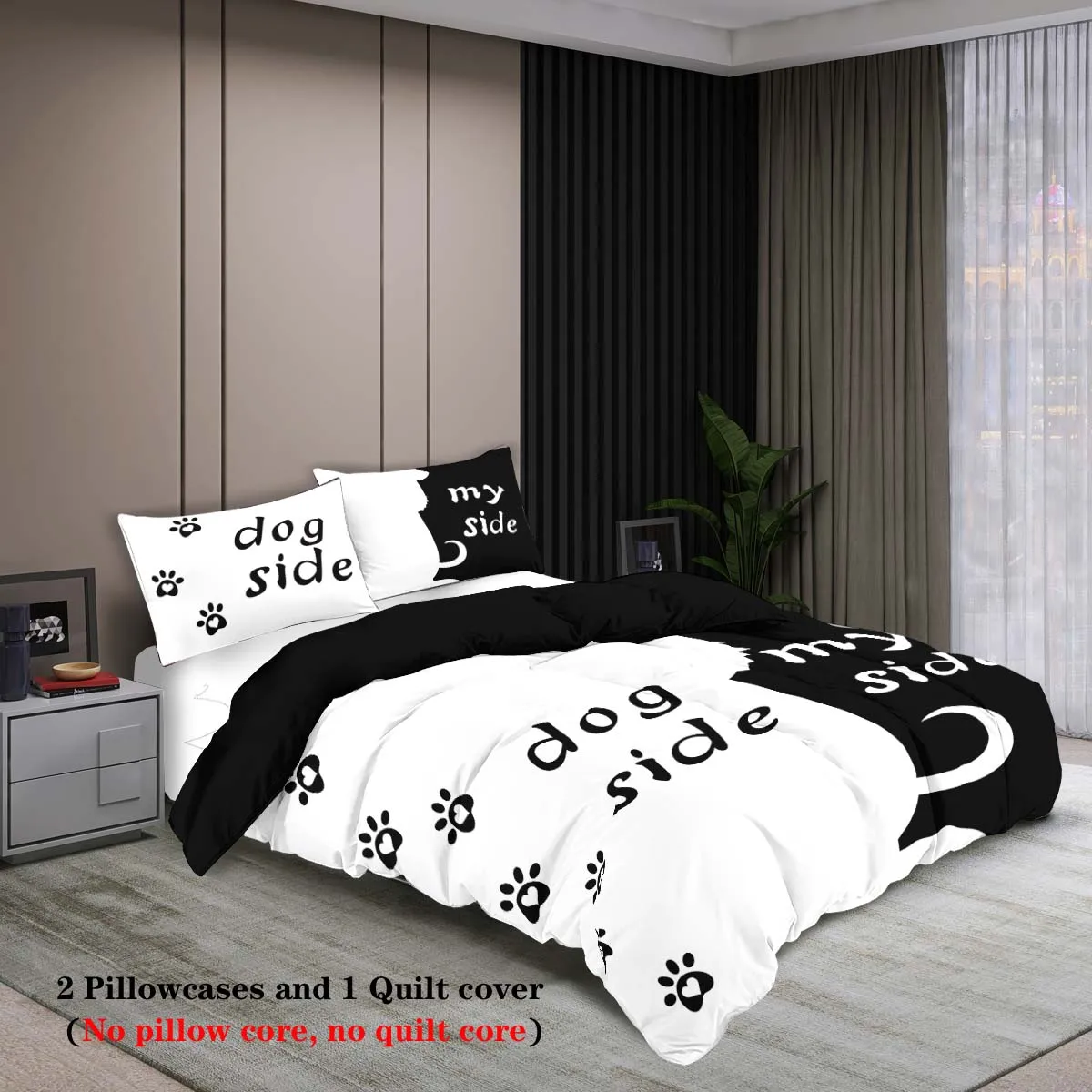 Three-piece set (1 duvet cover + 2 pillowcases, coreless), black and white dog element print bedding set, multiple sizes