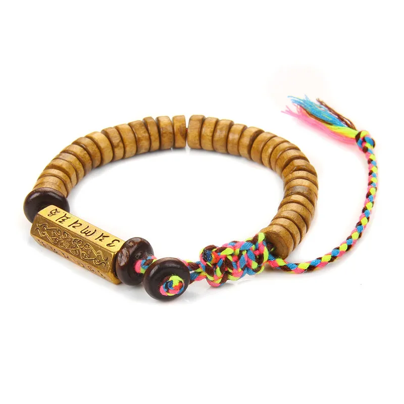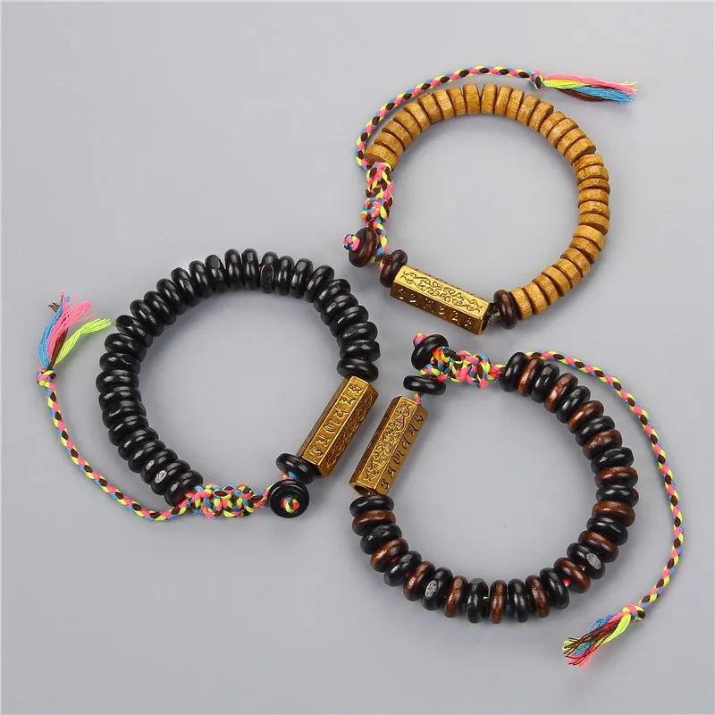 Tibetan Buddhist Hand Braided Cotton Thread Bracelet Women Men Natural Coconut shell beads Carved Amulet Handmade Bracelet Gifts