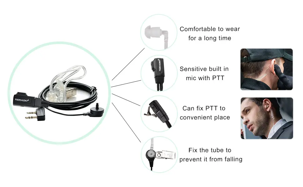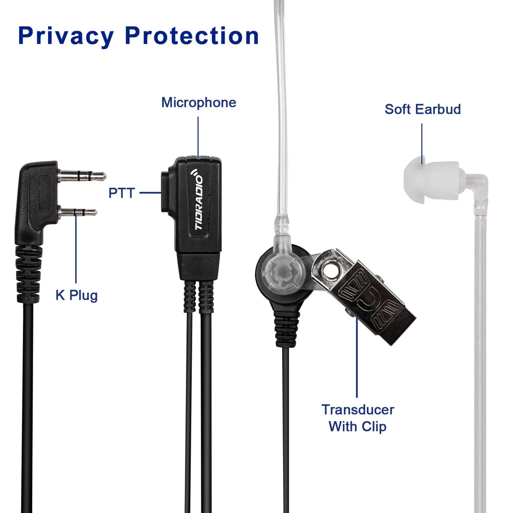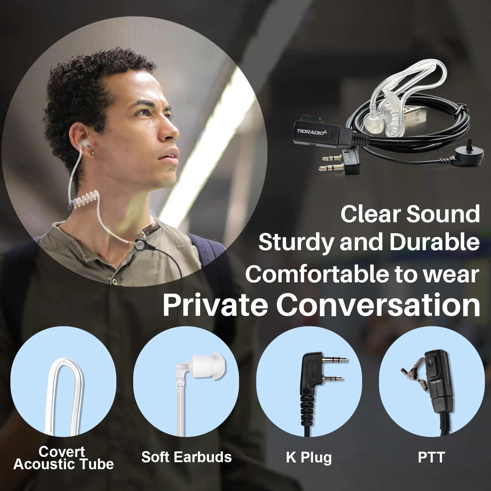 TIDRADIO Air Tube Headphone with Clear Acoustic Coil Tube Earbud for Two-Way Radios Transceivers and Radio Accessories