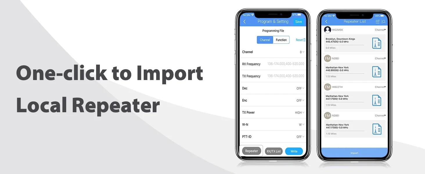 ✔【One-click to Import Local Repeater】:Import your nearby repeater configuration into your radio easily and quickly. Help your radio to reach local Repeater to get a better communication range.