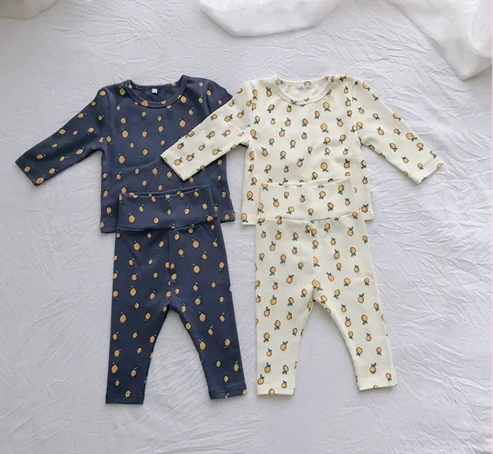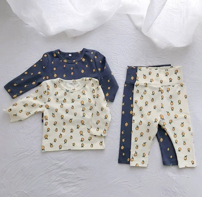 Toddler Underwear Suits Pure Cotton Warm High Waist Pants+Long Sleeve O-neck Top Sets Baby Girls Boys New Cute 0-3years Pajamas
