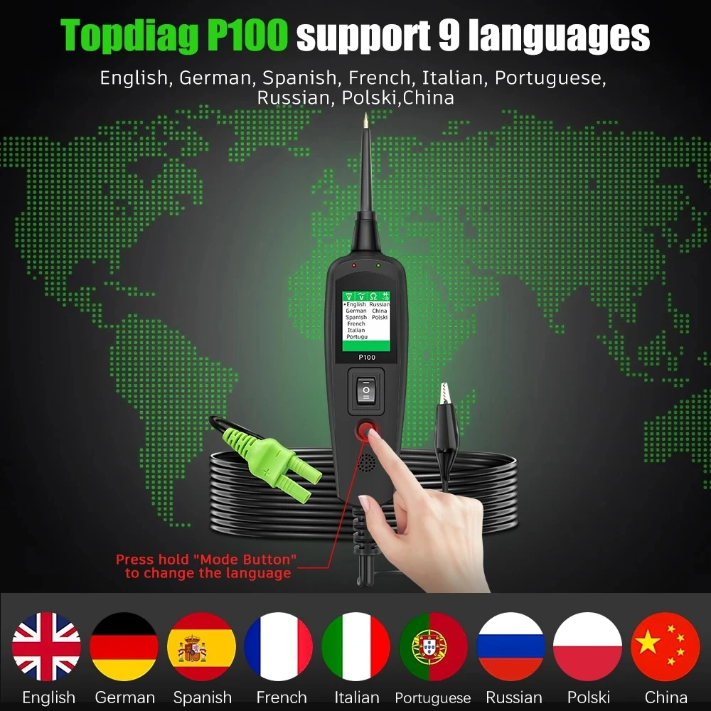 TOPDIAG P100 is an ultra-high cost-effective, more efficient automotive circuit diagnostic testing and analysis instrument, a highly integrated automotive specialized testing instrument.