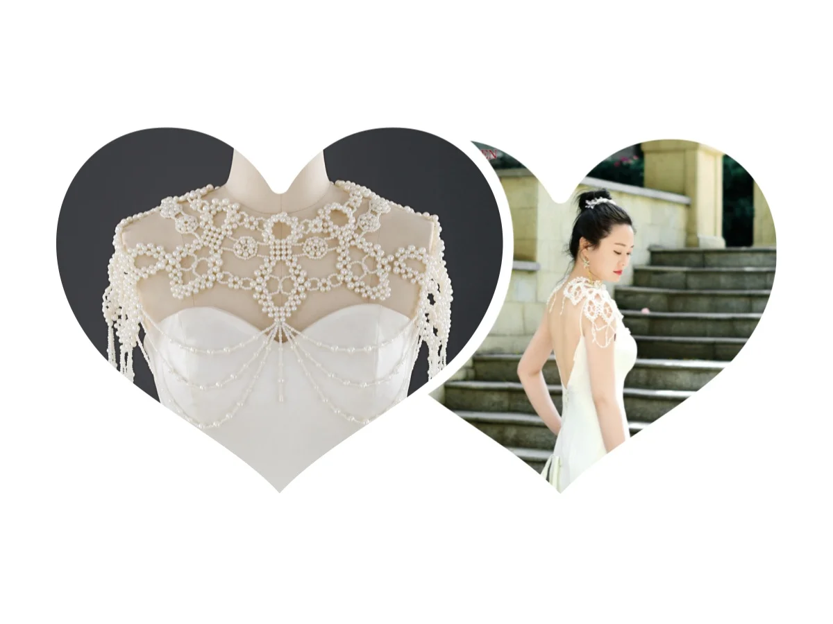 TOPQUEEN Bridal Luxury Pearls Shawl White Soft Lace Party Dress DIY Coat Removable Girlfriend Sleeves Wedding Dress Bolero Vg17a