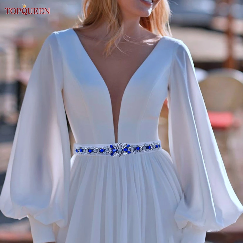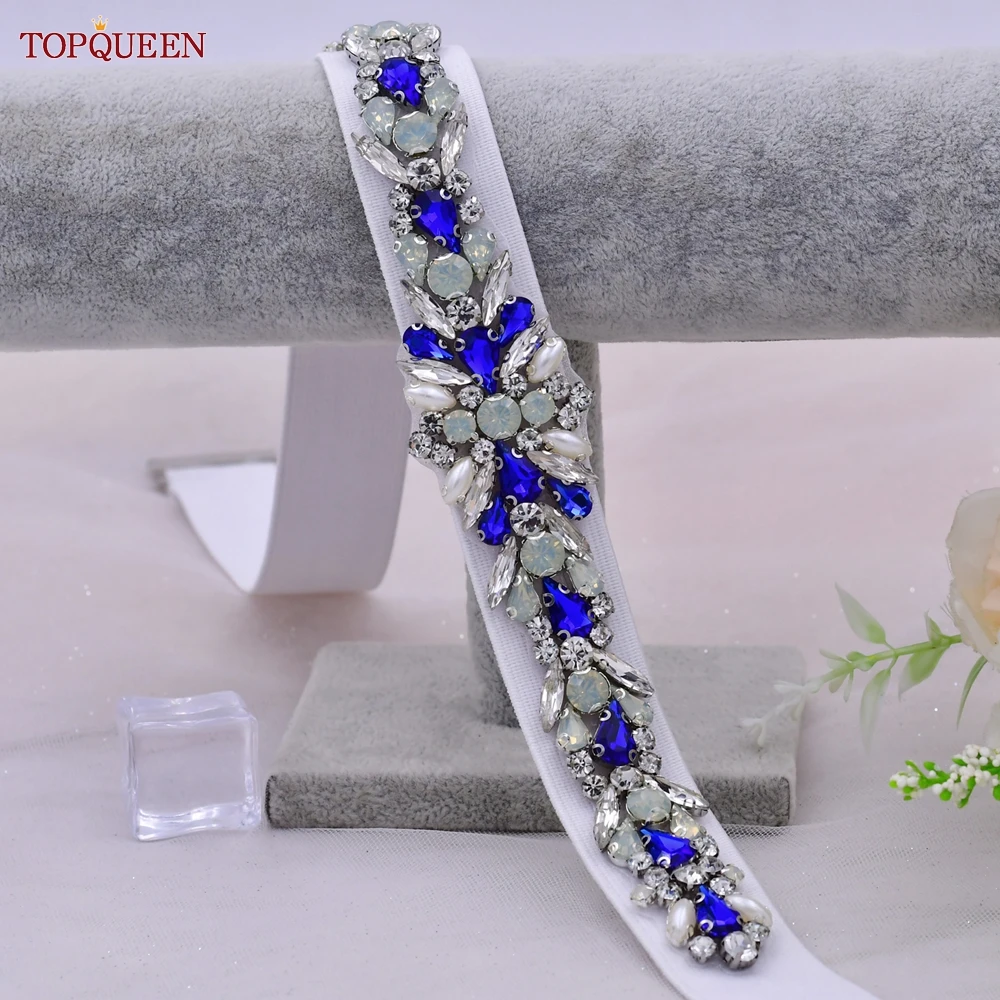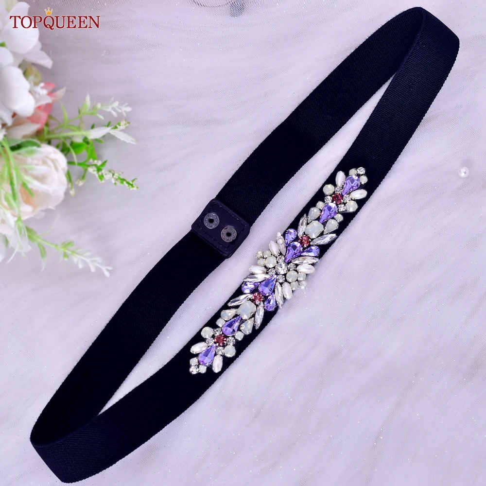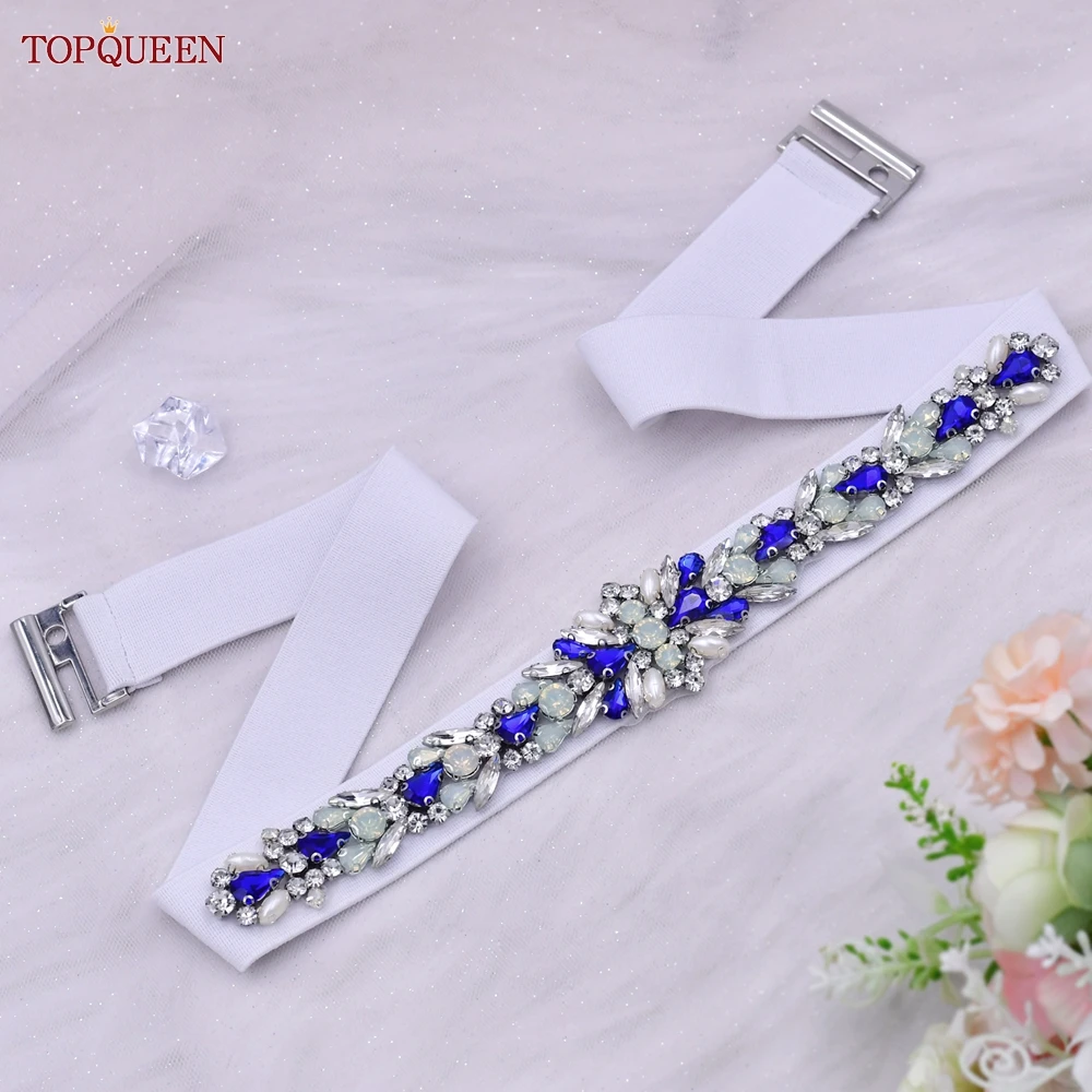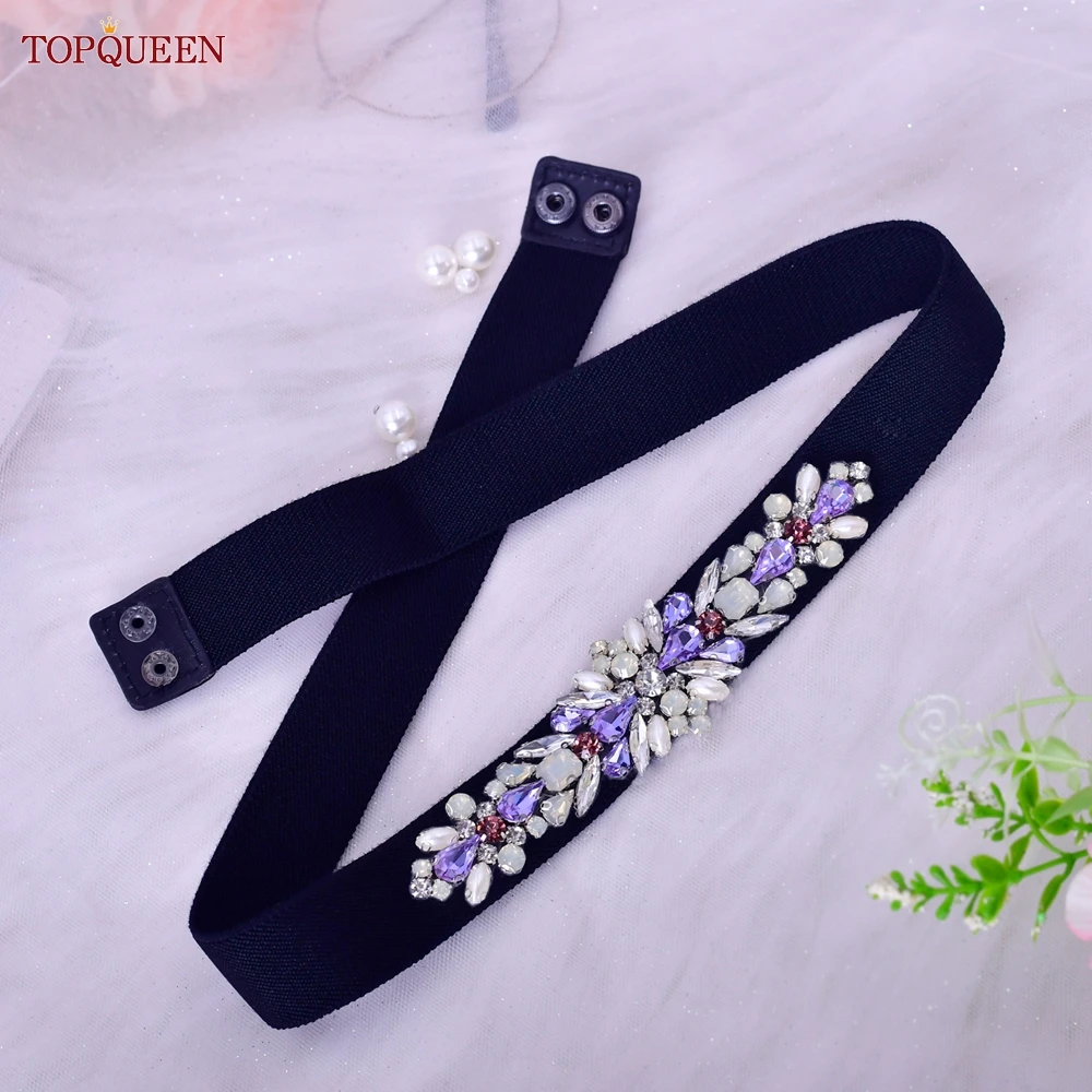 TOPQUEEN S26-B Wedding Dress Elastic Belts Silver Rhinestone Bridesmaids Sash Women Accessories Wide Party Prom Gown Applique
