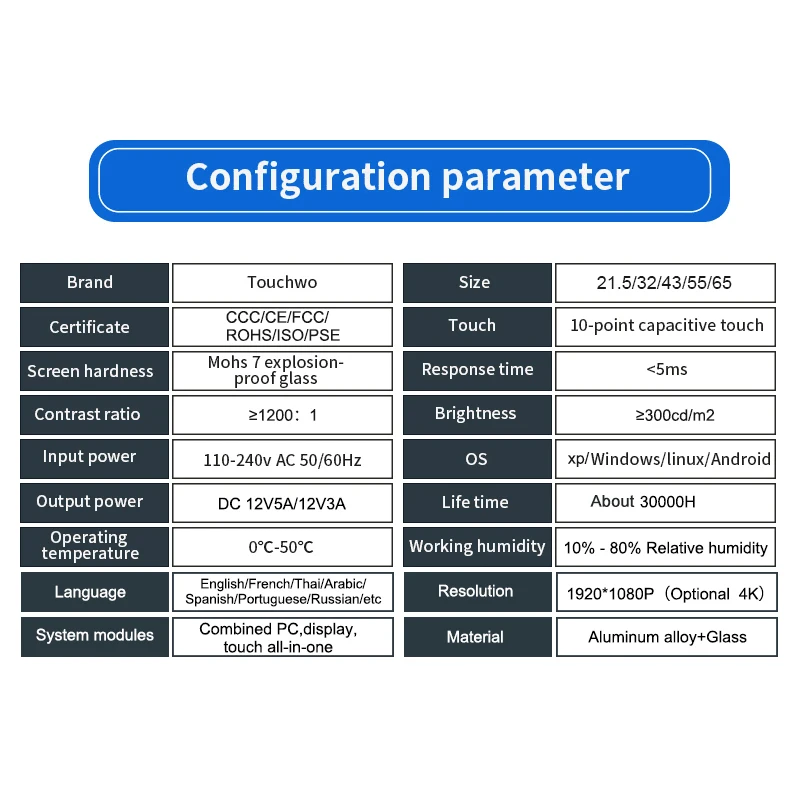 TouchWo 43 55 65 Inch TouchScreen Monitor Online Teaching Smart Board All In One Pc Digital Electronic Interactive Whiteboard