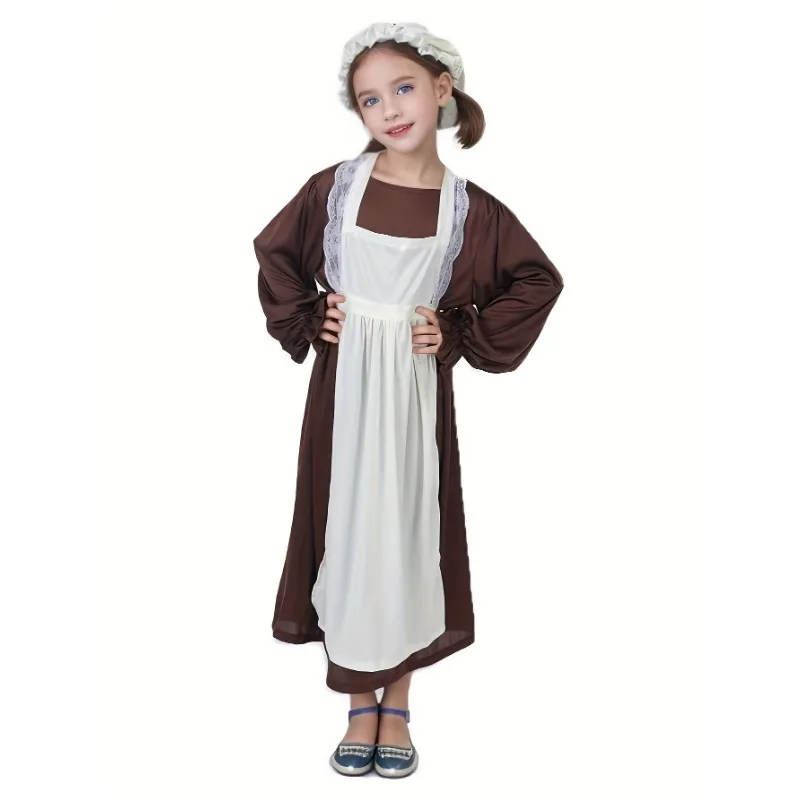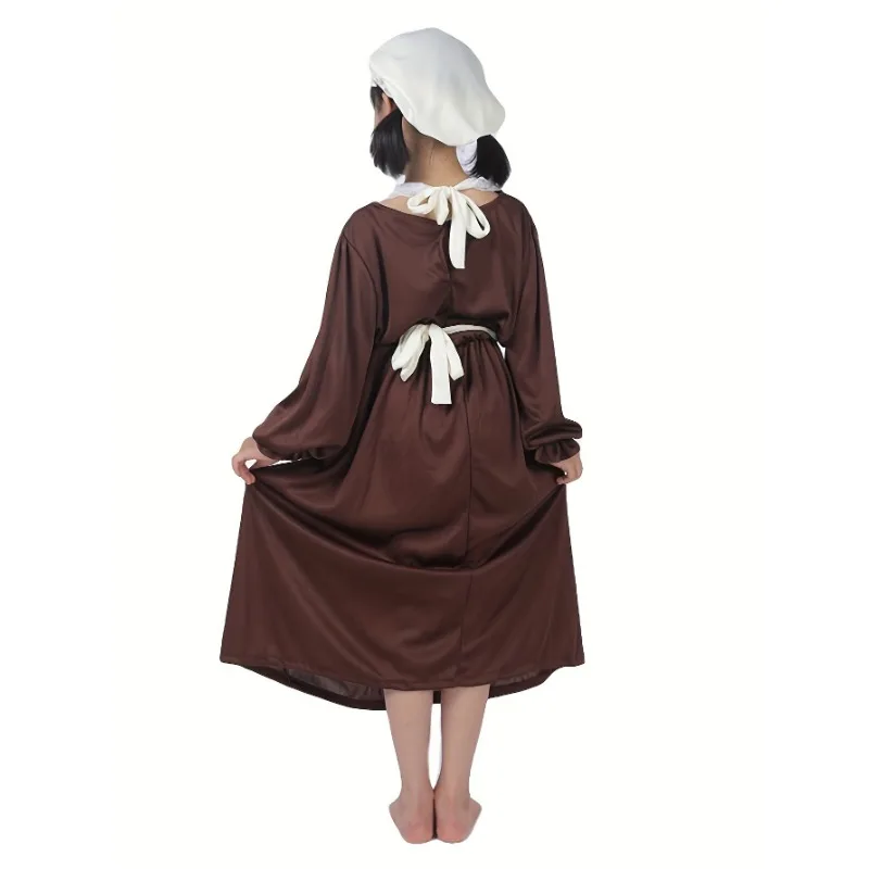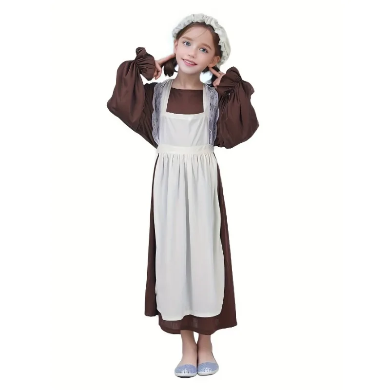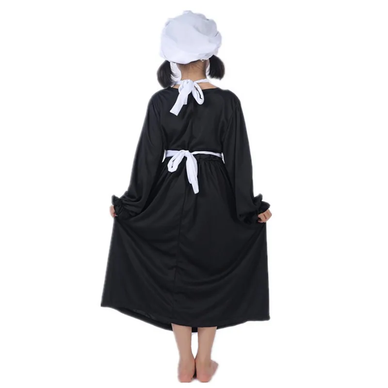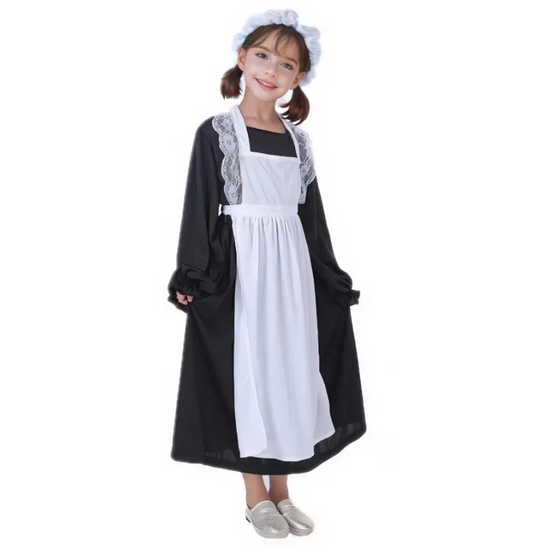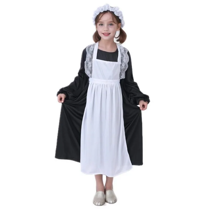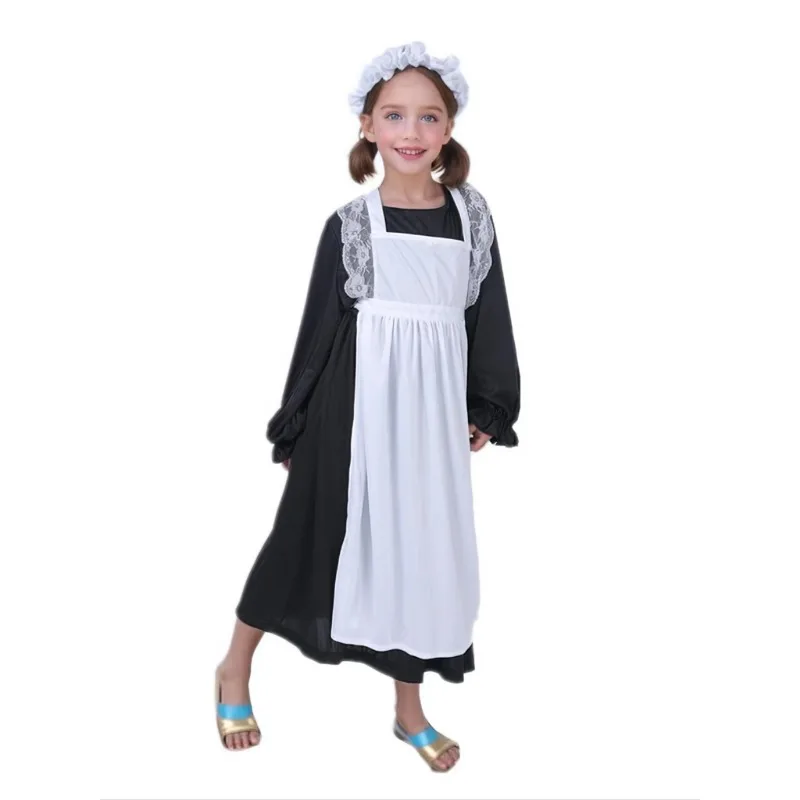 Traditional Spanish Costume Maid Name Cluster Dress Up Dress with Loose Long Sleeve Solid Color Lace Gown and Lace Trimmed Apron