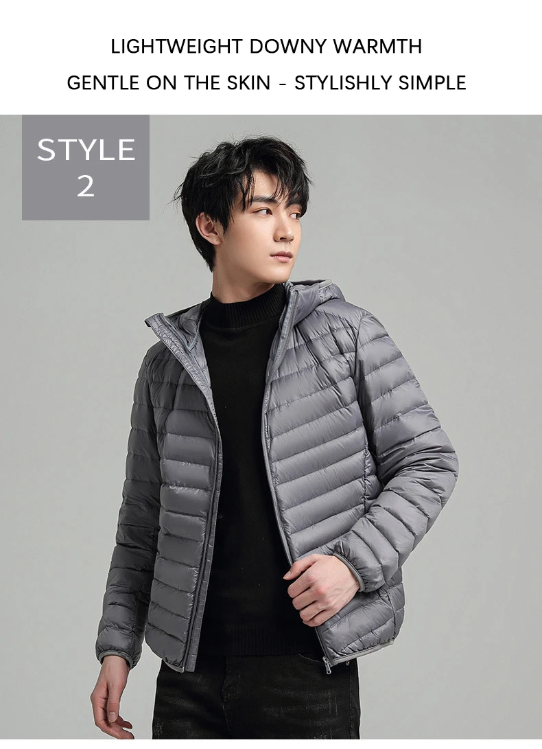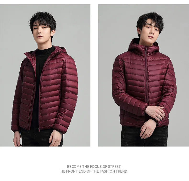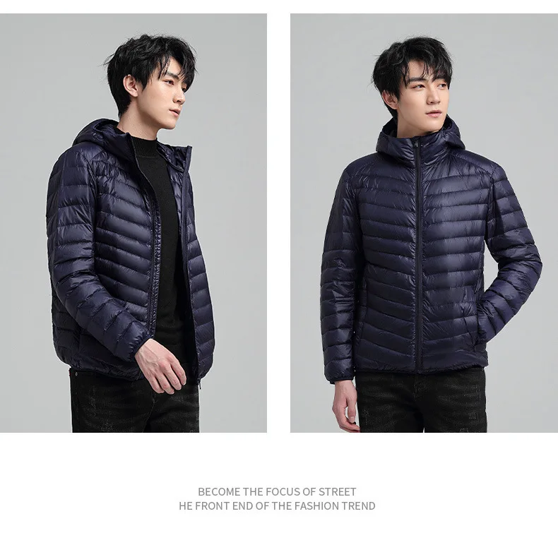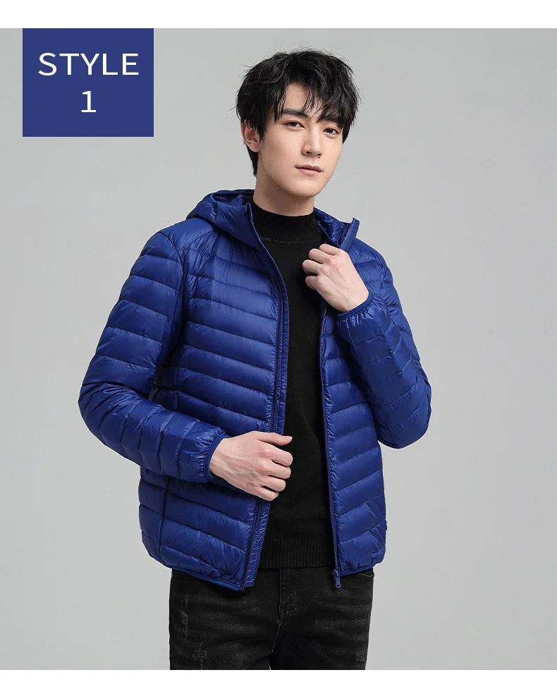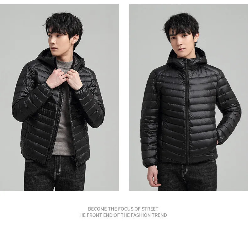 TRAF 2024 New Ultra-Light Foldable Down Jacket Hooded Warm Big Size Jacket Pure Color Casual High Quality Men’s Clothing