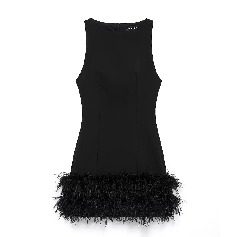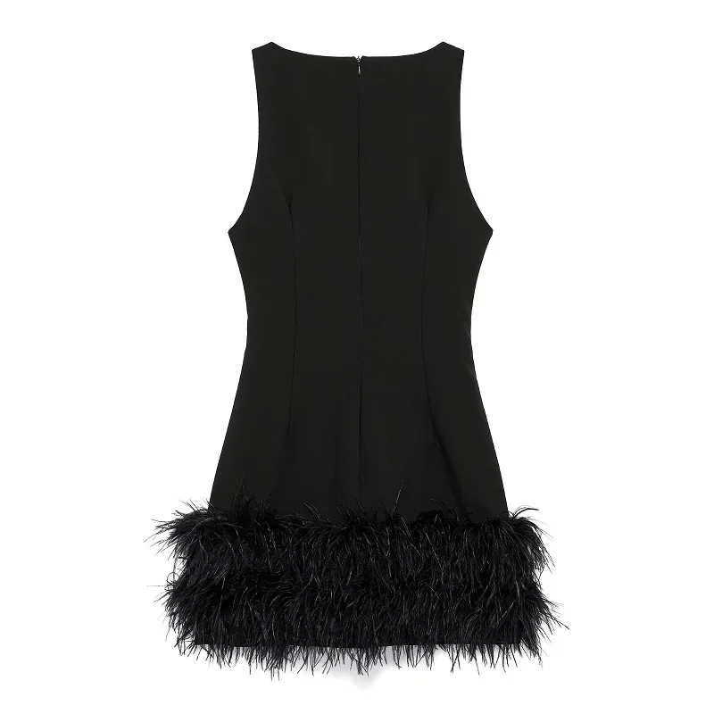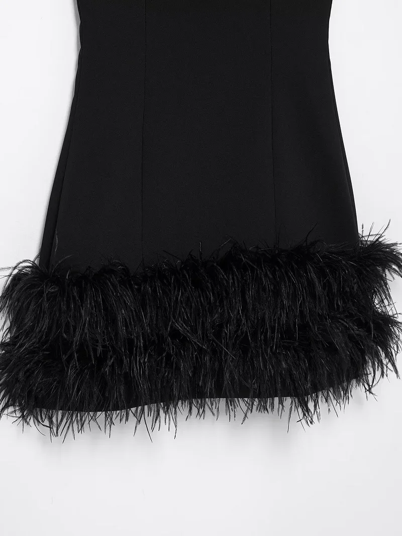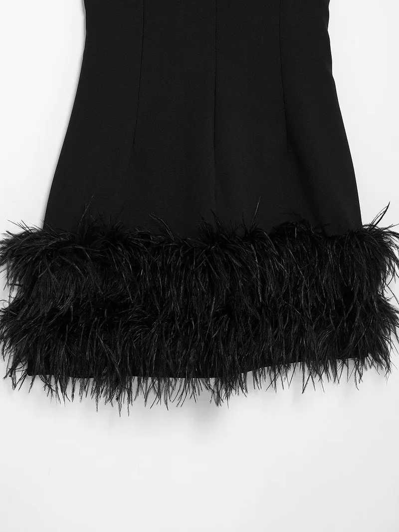 TRAF Black Feather Short Dresses for Women off Shoulder Corset Dress Women Fashion Sleeveless Dress Woman Evening Womens Dresses