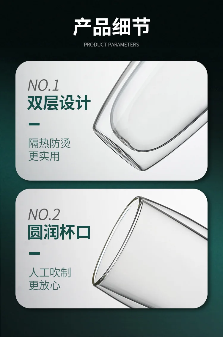 Transparent glass coffee cup milk whiskey tea beer double creative heat resistant health and environmental protection