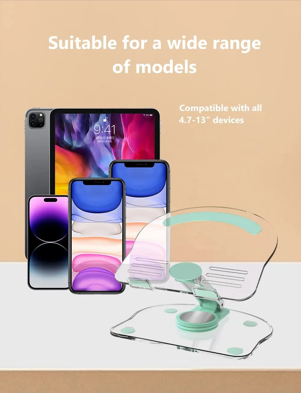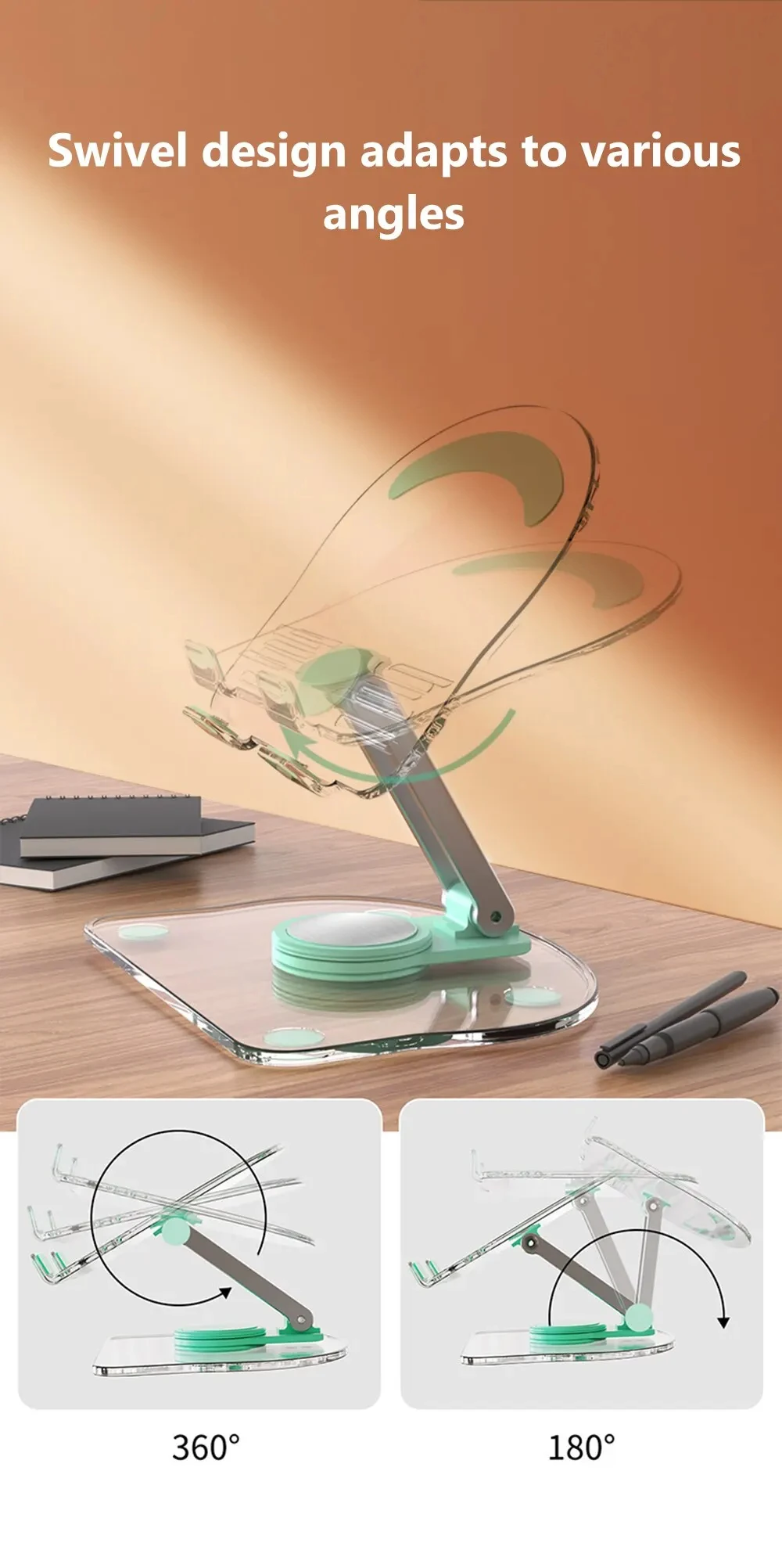 Transparent Rotating Stand Acrylic Plate Desktop Mobile Phone Tablet Universal Live Folding Adjustment Computer Support Stand